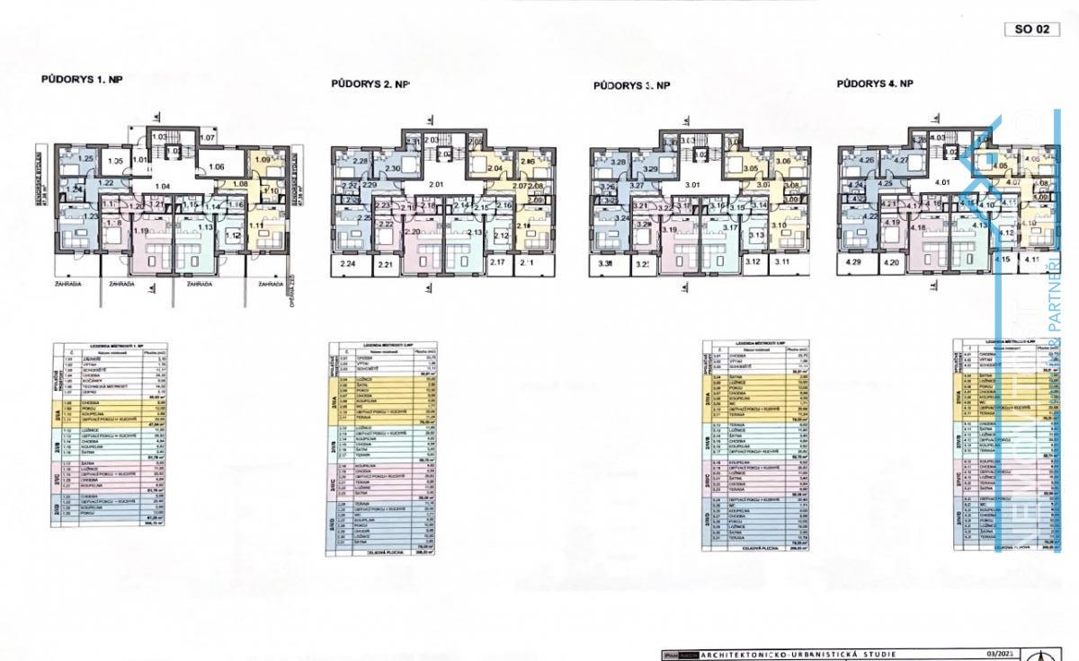 - 4 bytové domy se 4 nadzemními podlažími (S02-S05)