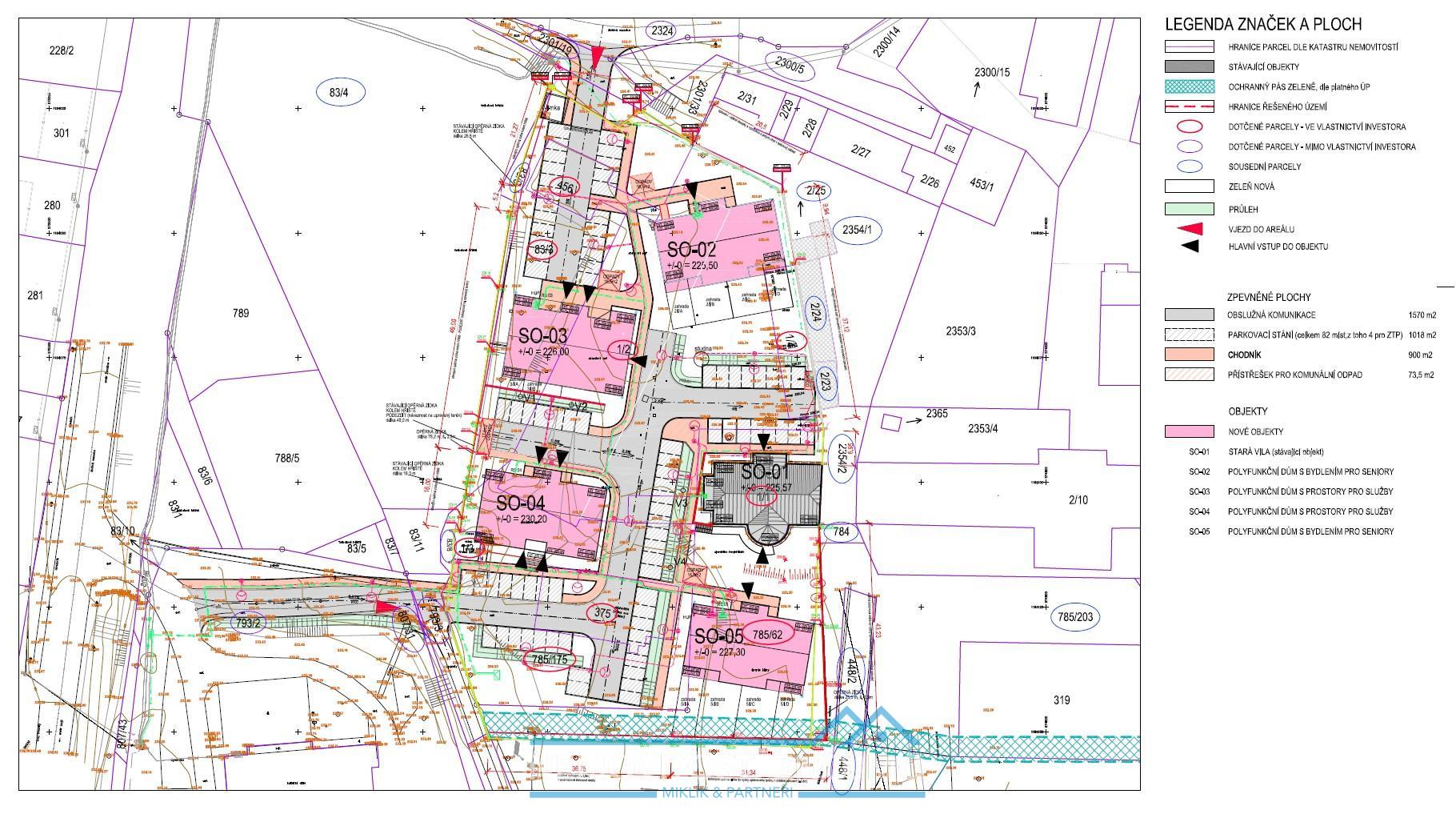 - Výkaz ploch, napojení na sítě, dopravní řešení, vsakovací zařízení,