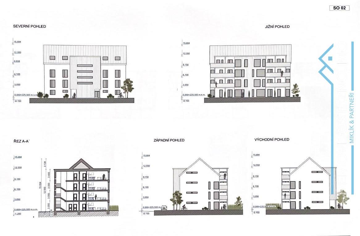 - Stavební povolení: vydáno pro 4 bytové domy, nyní se dokončuje povolení ještě pro další 3 bytové domy