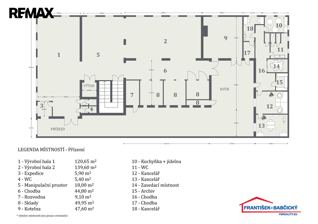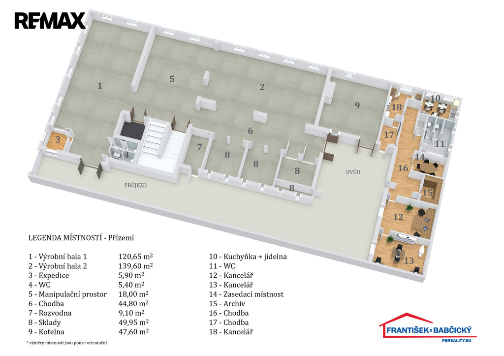 - Plocha kanceláří: 1161 m²