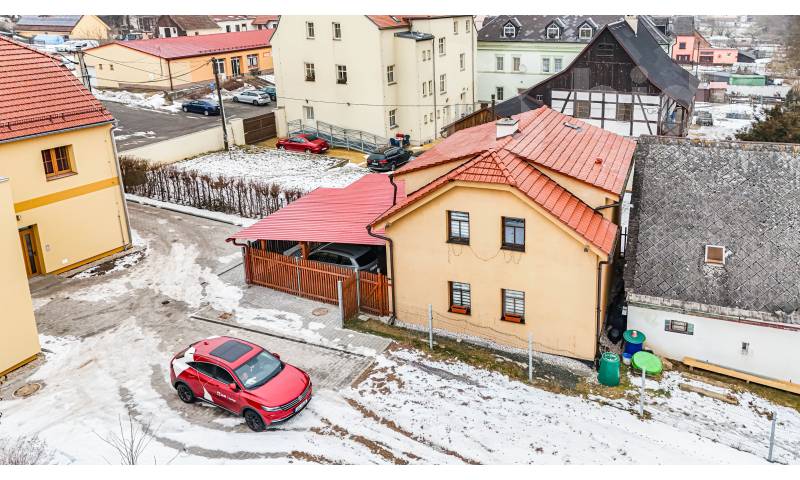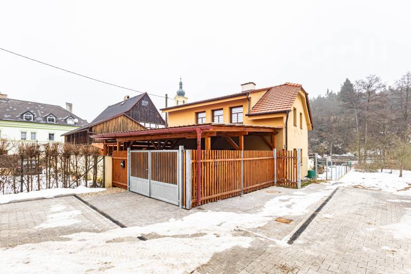 Součástí je pergola využitelná jako kryté stání pro auto, další parkovací místo je před domem. Nechybí ani zahradní domek a prostor pro posezení, grilování či klidné večery na čerstvém vzduchu.
