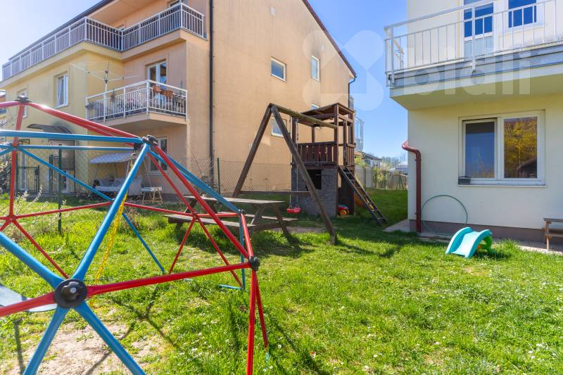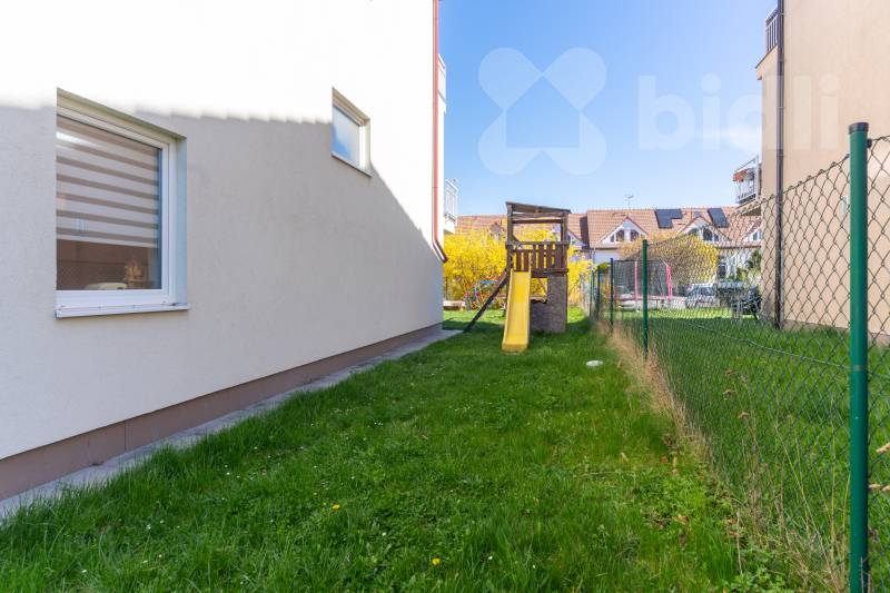 Ke společným prostorám majitelů bytů patří také prostor zahrady před a okolo celého domu. V přední části je vybudovaná zahrada pro děti, v zadní části pak možnost venkovního odpočinku s posezením pro majitele domu.