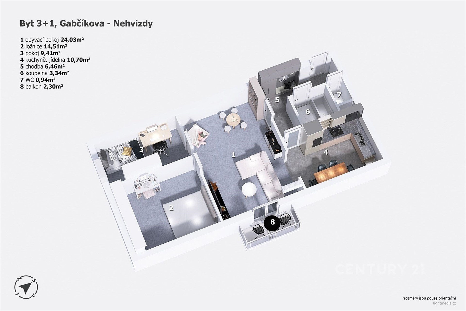 - Dispozice bytu: 3+1