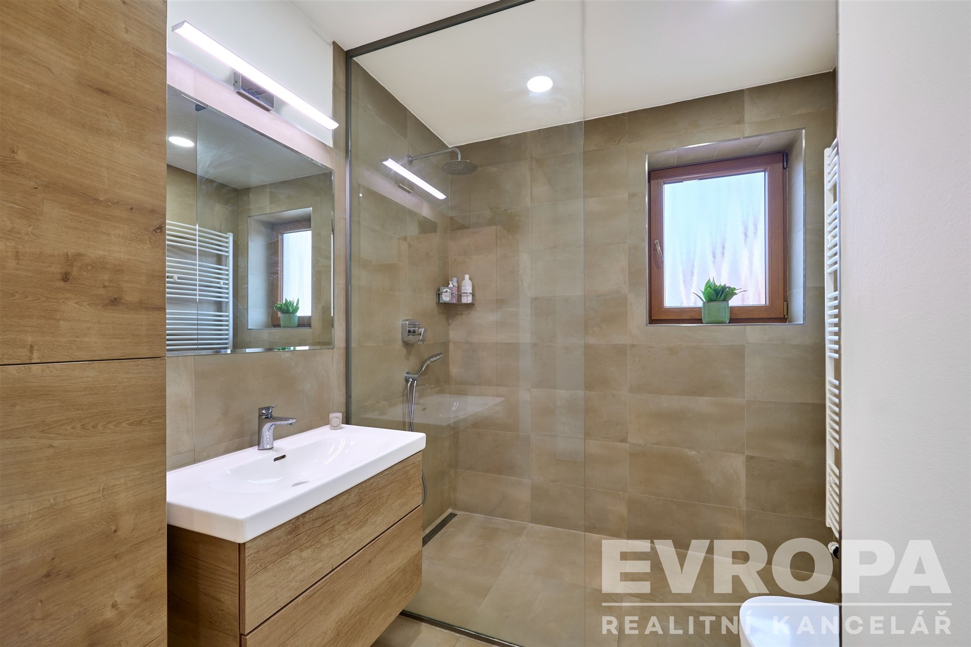 Dům byl rozšířen o přístavbu, která zahrnuje prostornou ložnici s vlastní šatnou a koupelnu s toaletou.