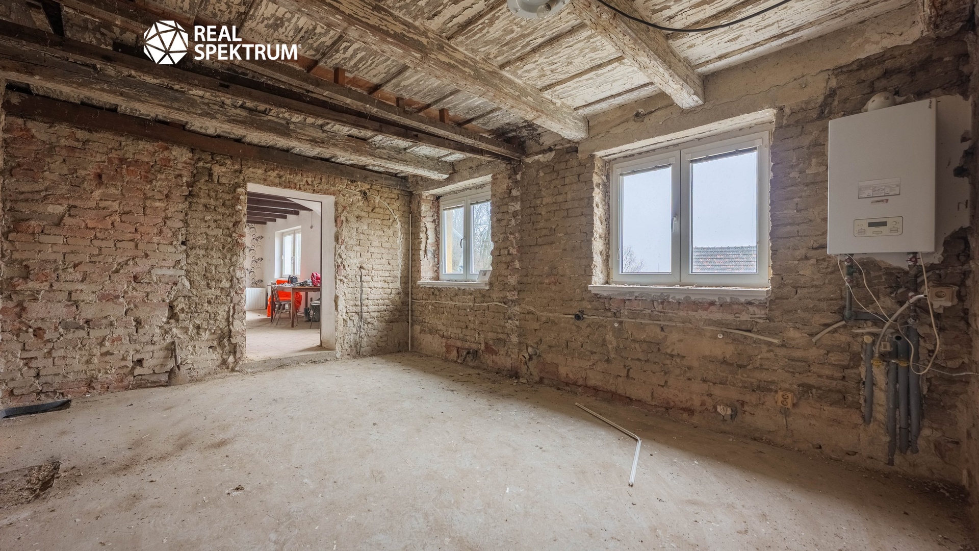 Původní majitel začal nemovitost připravovat na rozsáhlou rekonstrukci - konkrétně proběhlo odstranění vnitřních omítek a odkrytí stropních konstrukcí. K dispozici jsou půdorysy budovy. Náročnost potřebné rekonstrukce je značná, a proto zmiňujeme zájemcům také možnost demolice stavby a výstavbu nového domu na pozemku. Položkový rozpočet demolice byl vypracován a činí 893 760 Kč s DPH. Rozpočet je k doložení.