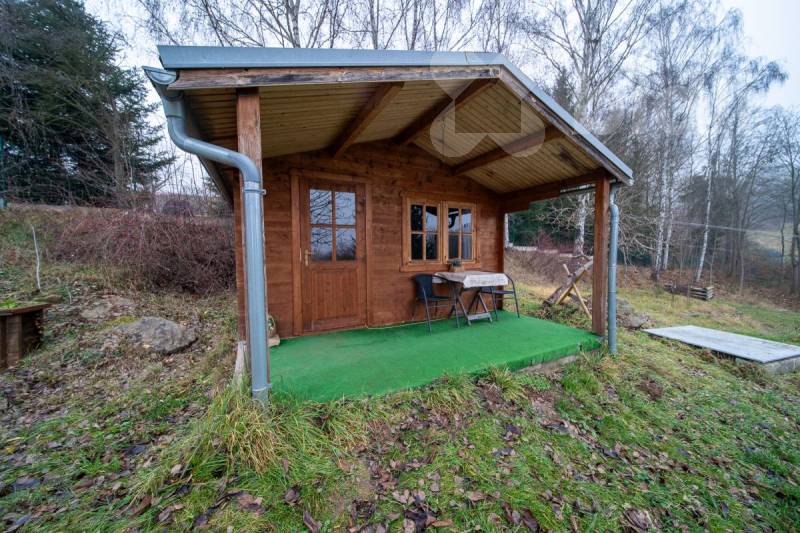 Součástí prodeje je rozlehlý pozemek se vzrostlými stromy, zahradním domkem, bazénem a potůčkem, který poskytuje dostatek soukromí a prostoru pro relaxaci. Velikost pozemku i jeho uspořádání nabízí další možnosti využití.