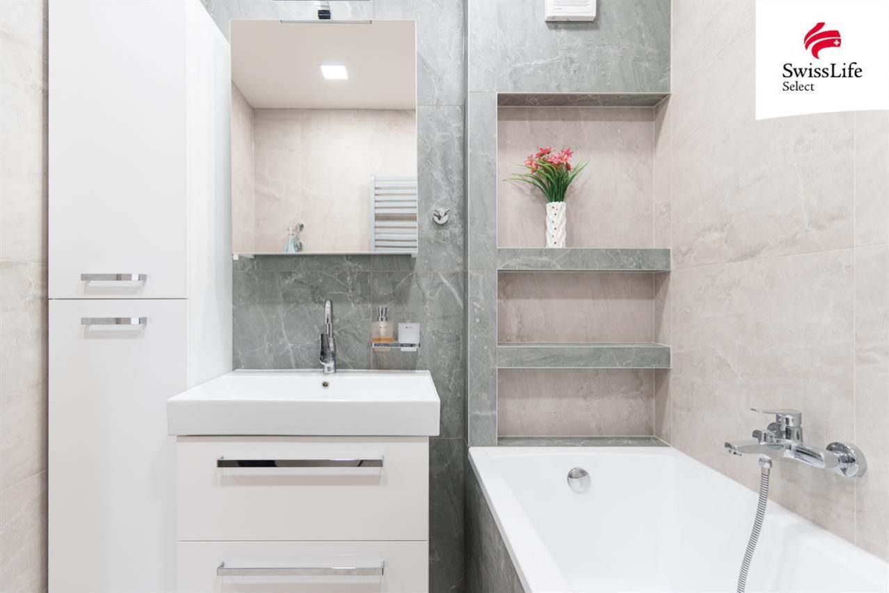 Byt prošel kompletní zdařilou rekonstrukcí včetně nové kuchyňské linky, nových rozvodů a nových podlah v celém bytě. Koupelna i WC jsou obložené moderními obklady a mají praktické zásuvné dveře. V bytě jsou plastová okna a nové interiérové dveře. V obýváku a kuchyni jsou zvenku nainstalované elektricky ovládané předokenní rolety. Vstup do bytu chrání bezpečnostní dveře NEXT. Na chodbě je vestavěná skříň, která maximálně využívá prostor k uložení věcí.