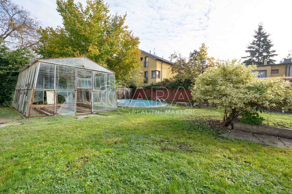 Dispozice přízemí: garáž s dílnou o velikosti 83 m2, sklípek, kuchyně, předsíň a tři pokoje o celkové velikosti 61 m2. Ze zahrady vstup do původní prádelny + další skladové prostory o velikosti 20 m2.