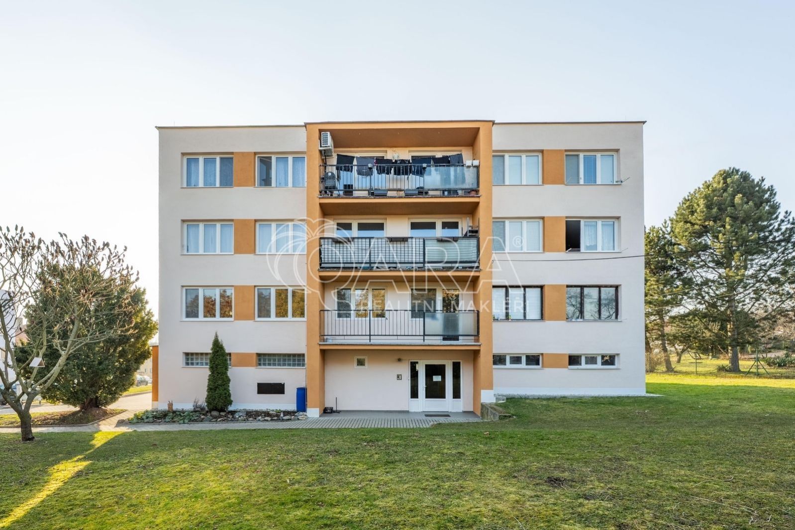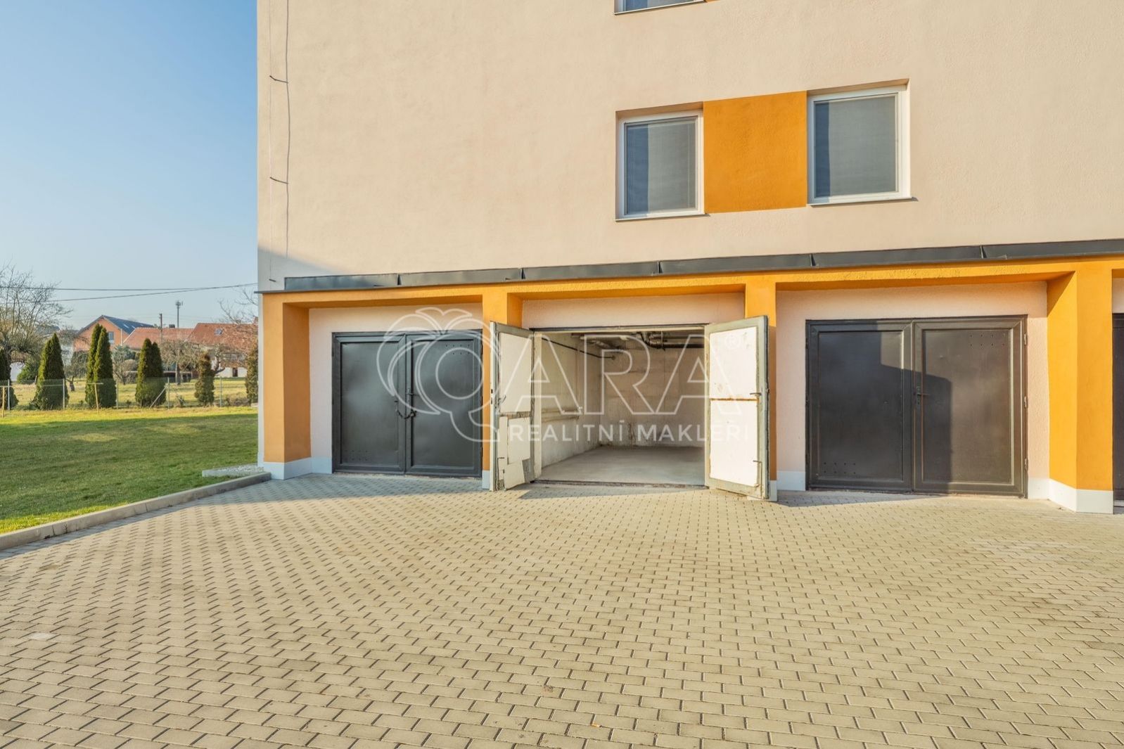 Společně s bytem je také možnost dokoupit za 400.000,- Kč zděnou, uzavíratelnou garáž o velikosti 20 m umístěnou v přízemí domu (není ale podmínkou), jinak lze parkovat bez problému na ulici.