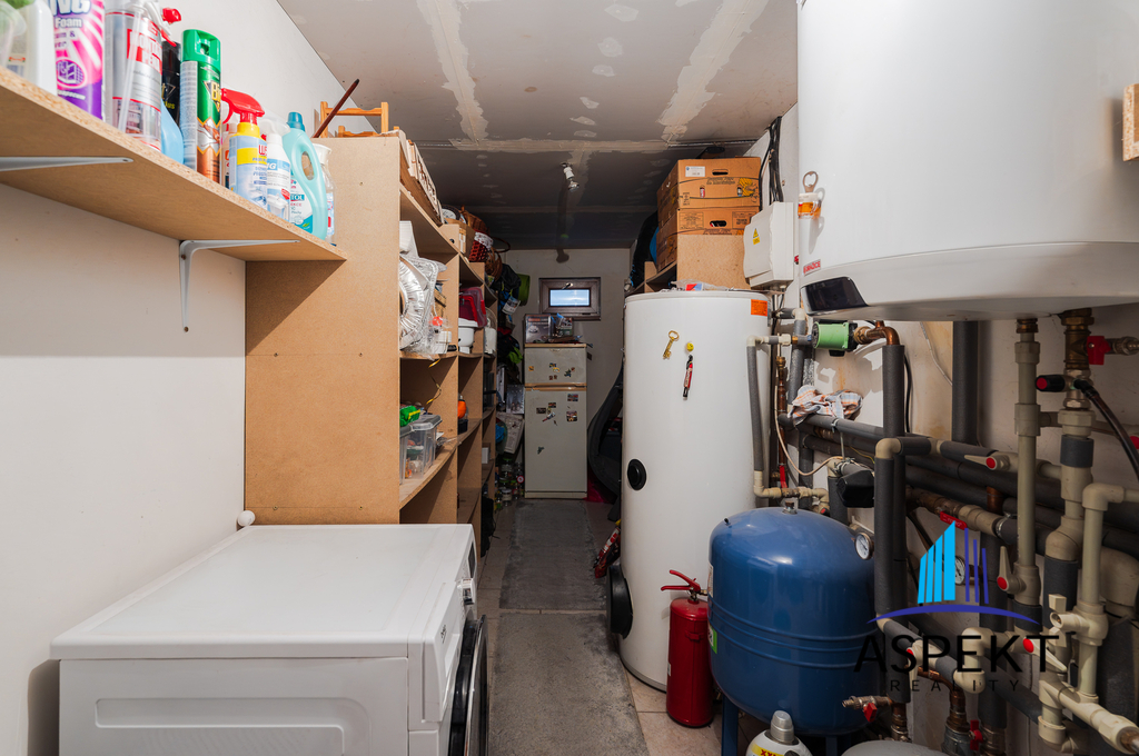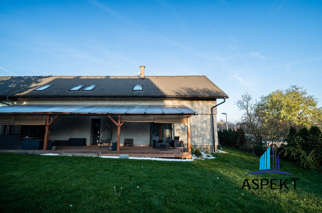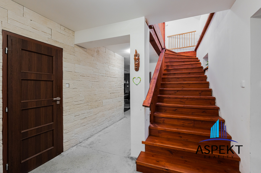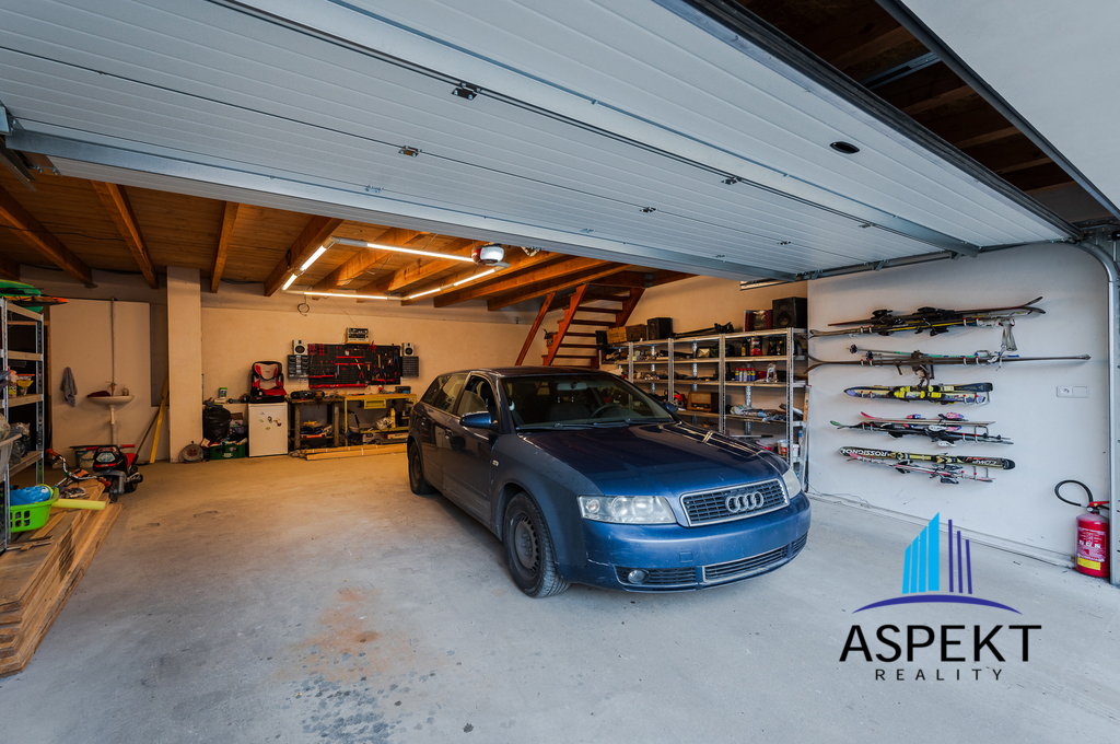Dále se v domě nachází dvougaráž, která je přístupná přes technickou místnost a nabízí dostatek prostoru pro parkování. Nad garáží je umístěna herní místnost, kde je možné si zahrát kulečník nebo šipky, případně ji využít pro fitness aktivity. Do této místnosti je přivedena elektřina a voda pro nový kuchyňský koutek, což umožňuje její přestavbu na samostatnou bytovou jednotku.