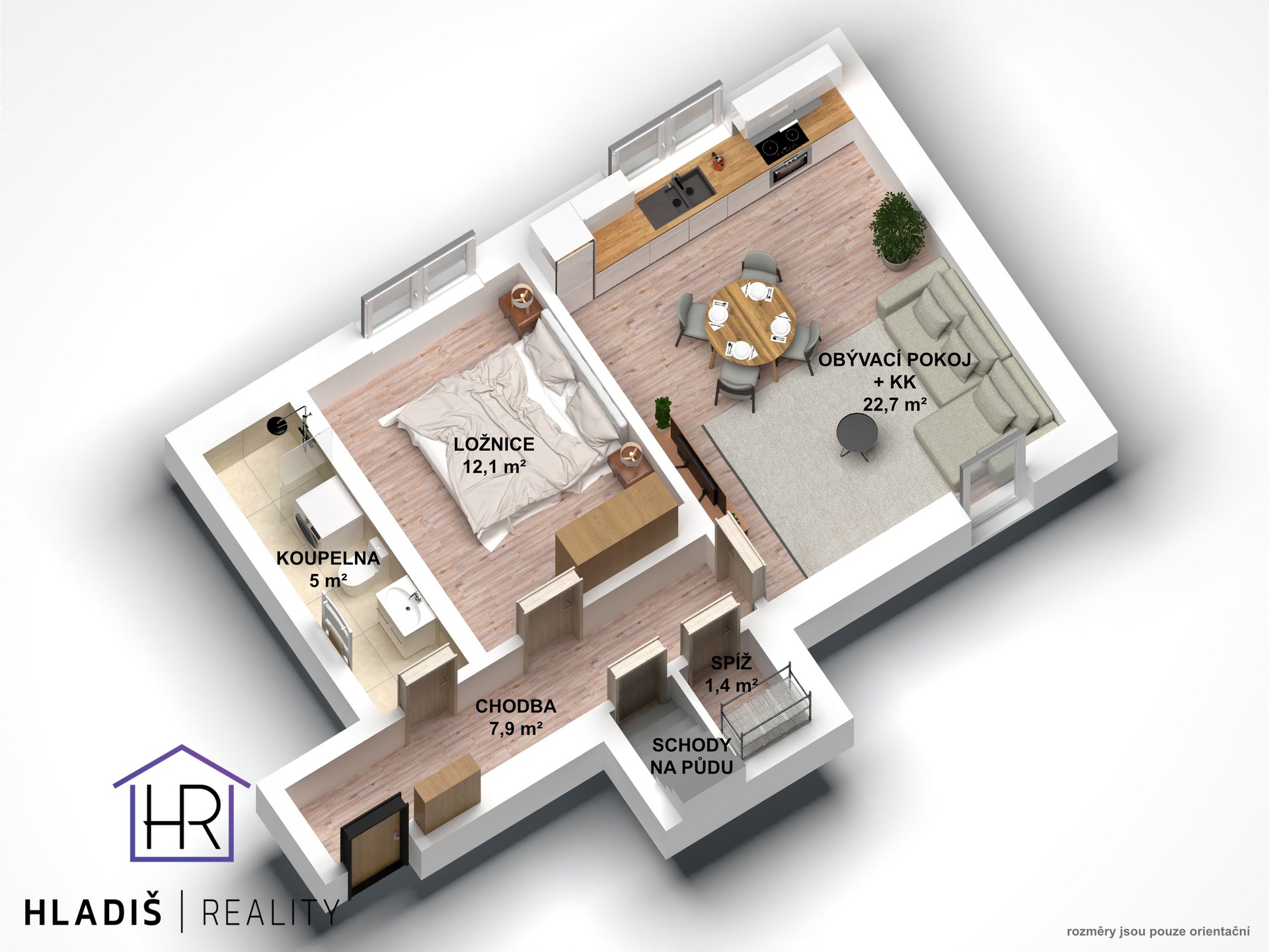 - Dispozice bytu: 2+kk