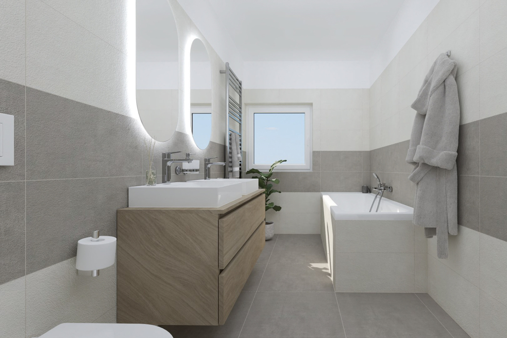 Rodinný dům z keramického zdiva s kvalitní tepelnou izolací bude dokončen v nadstandardním provedení, které bude zahrnovat kompletní vnitřní rozvody a instalace, plastová okna a dveře s izolačním trojsklem, teplovodní podlahové vytápění s regulací v každé místnosti, interiérové dveře se zárubněmi, vinylové podlahy v kombinaci s keramickou dlažbou, obklady a sanitu od renomovaných výrobců. Připraveny jsou také rozvody pro kuchyňskou linku, klimatizaci, venkovní žaluzie i fotovoltaickou elektrárnu. Vytápění i ohřev vody zajistí tepelné čerpadlo Daikin Altherma 3 R, které garantuje vysoký komfort při velmi nízkých provozních nákladech.