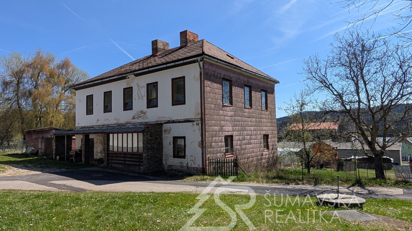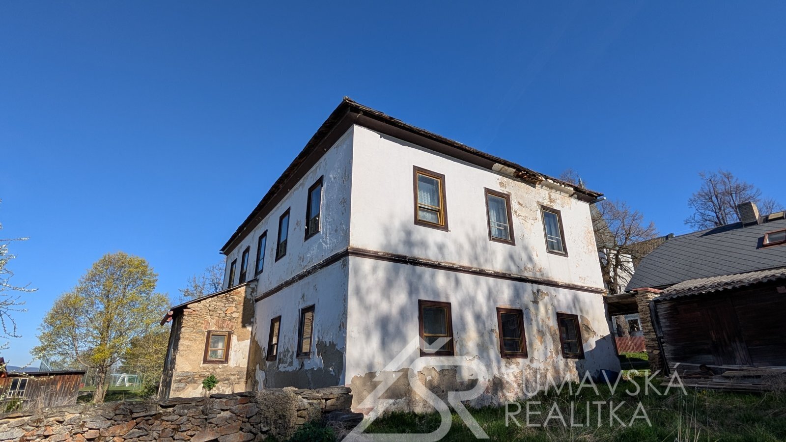 Popis: jedná se o původní bytelně stavěnou školu, ještě z předválečného období. Velké a světlé místnosti také poté sloužily jako místní malé kino. Pak byl dům přestavěn na rodinné bydlení, ale jeho údržba vázla a nyní je ve stavu vhodném k rekonstrukci. Nabízí se krásné rezidenční bydlení pro větší rodinu s dostatečným pozemkem, nebo se pokusit dům přestavět na bytový dům o šesti apartmánech –dva na každém patře. Tato varianta je vhodná pro menší developerský projekt.