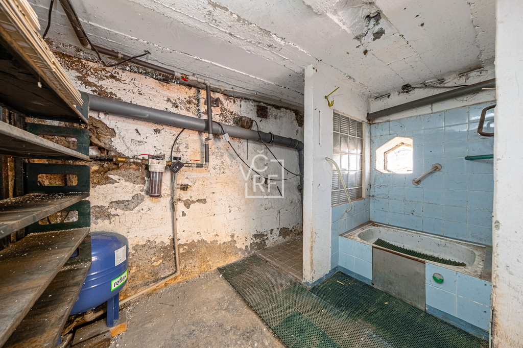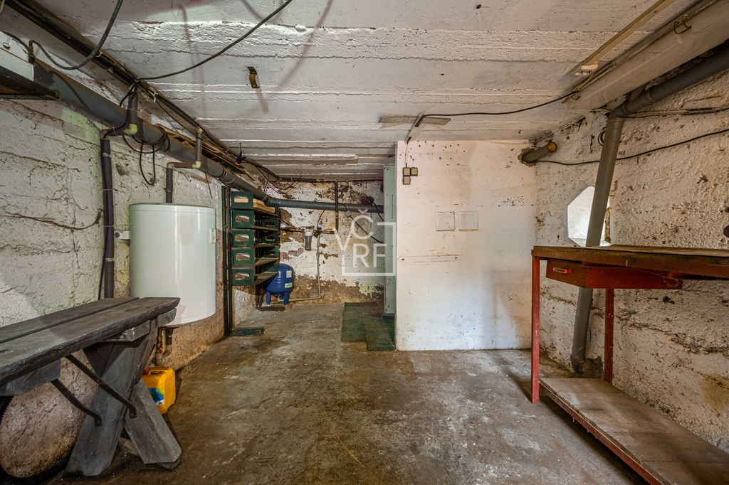 Nemovitost je podsklepená, sklepní prostory slouží jako dílna, sklad a technické zázemí. Vytápění je řešeno kamny na tuhá paliva, ohřev vody zajišťuje bojler a k dispozici je také vlastní studna.
