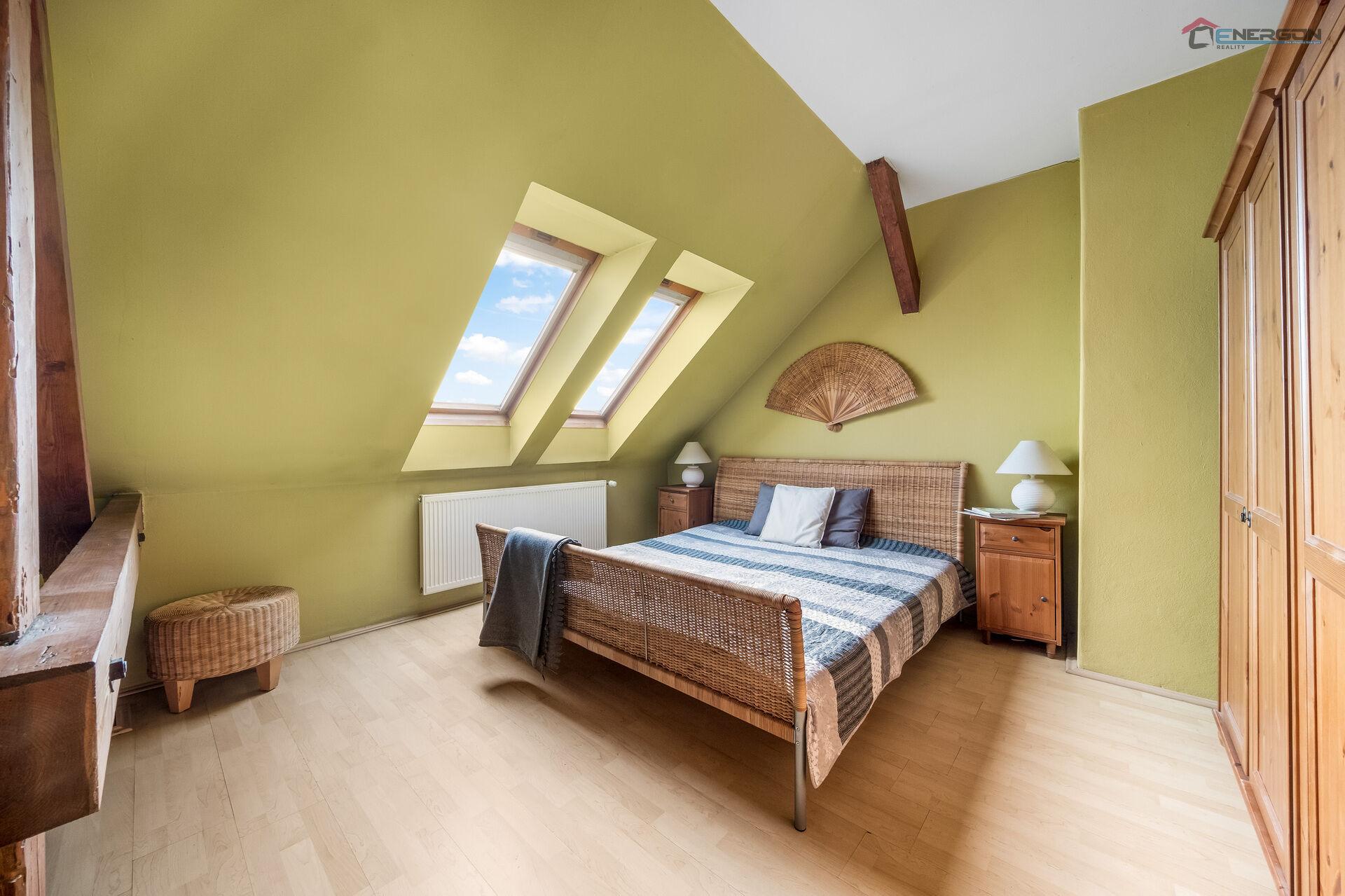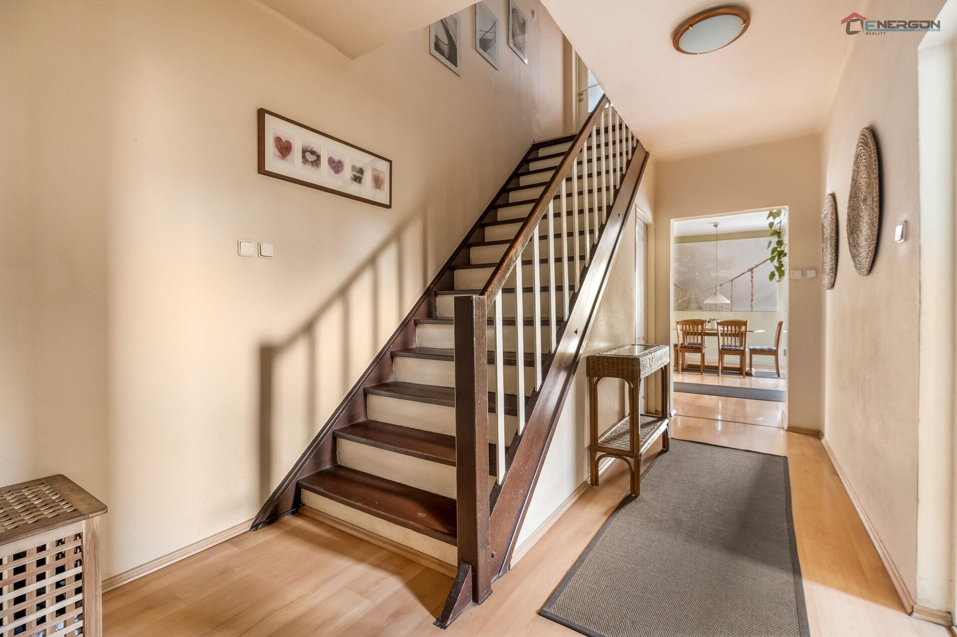 Patrový dům prošel v r. 2015 rekonstrukcí. Díky velkým oknům je interiér příjemně prosvětlený. Okna zároveň přirozeně propojují obytný prostor s rovinatou zahradou, kde se nachází bazén, prostorná terasa s výhledem na zámek a okolní krajinu, venkovní posezení s krbem a kryté parkovací stání pro dvě auta. Detailní dispozice domu je k dispozici v přiloženém půdorysu.
