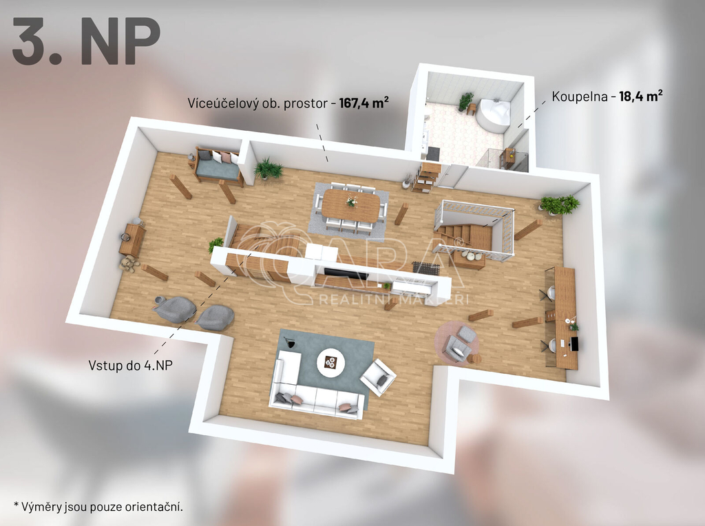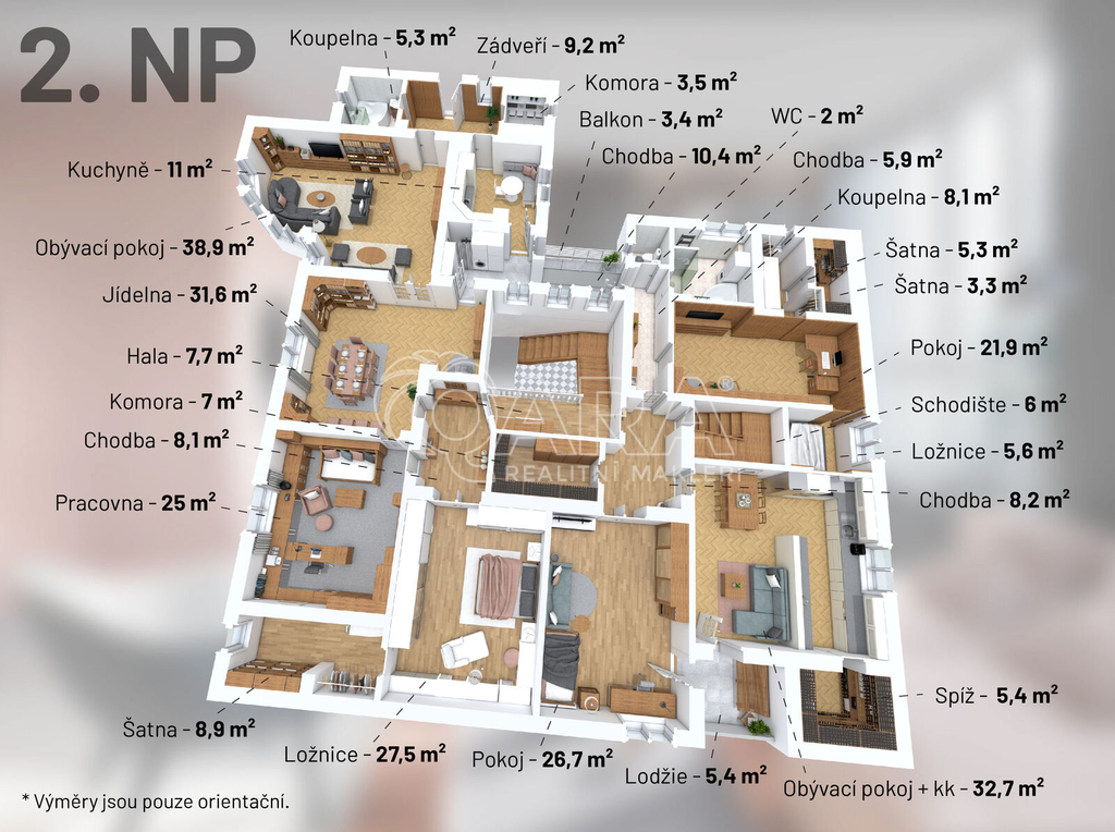 ✔ půdní prostor 265 m² – ideální pro luxusní mezonet, ateliér či další byty