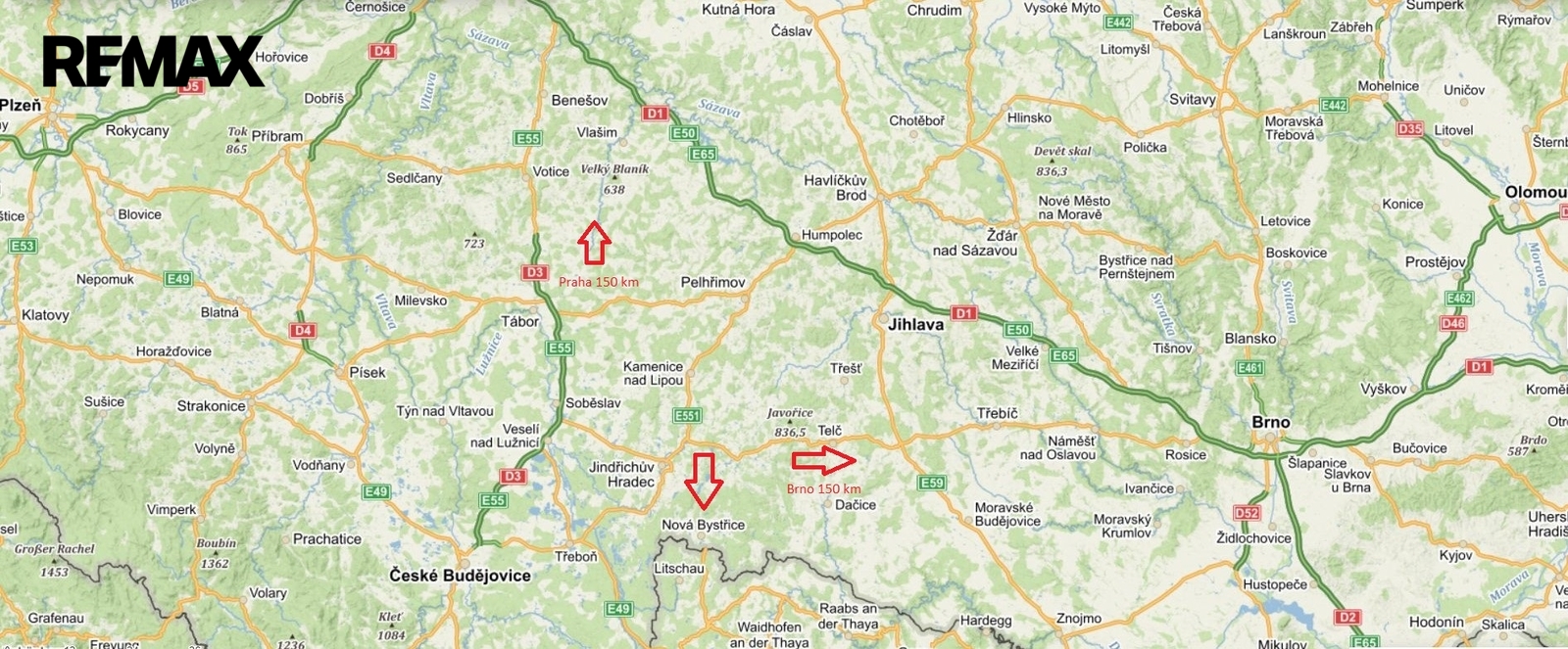 Nová Bystřice se nachází na hranicích s Rakouskem, přímo v srdci České Kanady. Město disponující kompletní občanskou vybaveností. Dům stojí doslova jen pár kroků od centra města. Ve vedlejším domě se nachází samoobsluha s potravinami. Další velká samoobsluha je přímo naproti domu. V Nové Bystřici a těsném okolí se nachází mnoho kulturních či historických zajímavostí jako např. zámek, golfové hřiště, muzeum historických vozidel, úzkokolejná trať nebo rekreační rybník Osika známý svou čistou vodou.