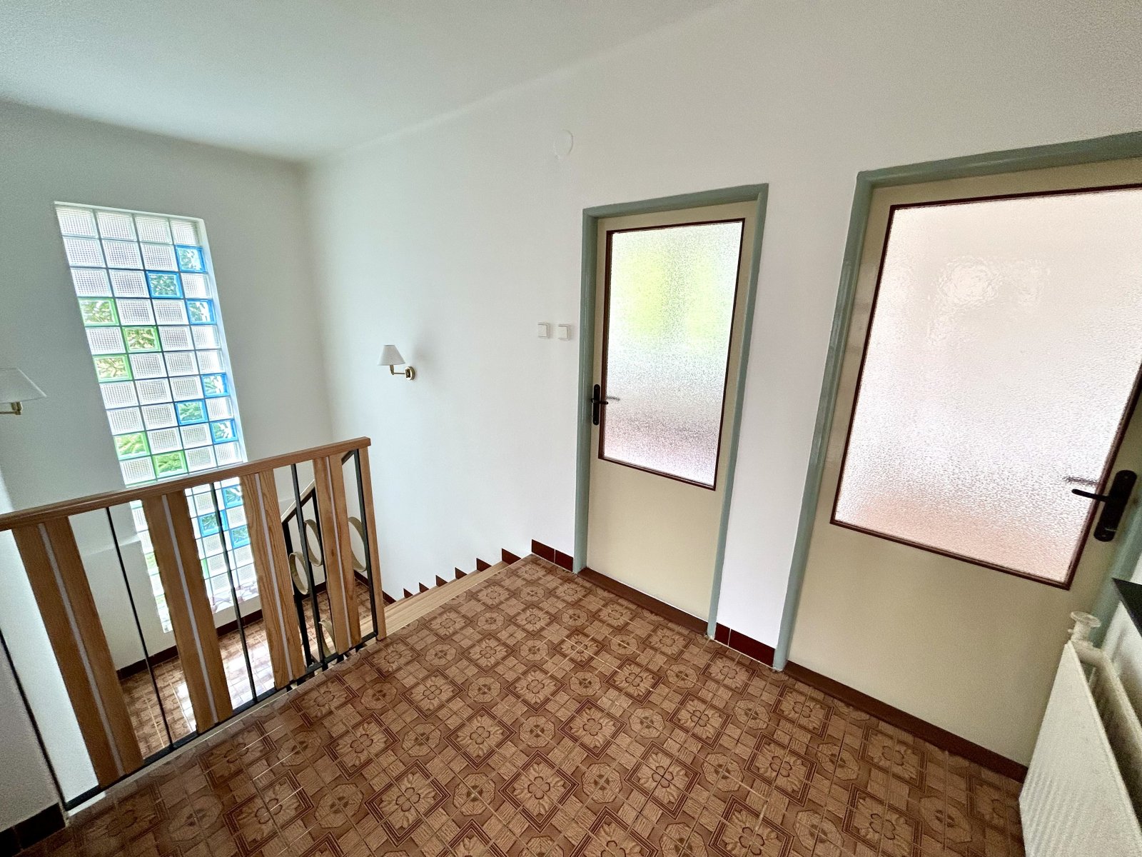 - do patra se dostaneme ze vstupní chodby domu po schodišti, v patře 3 obytné místnosti a prostorný obývací pokoj, místnost pro kuchyň (původní odstraněna – novou zajistí majitel před uzavřením nájemní smlouvy), dále v patře komora vedle kuchyně, koupelna s vanou a samostatné WC.