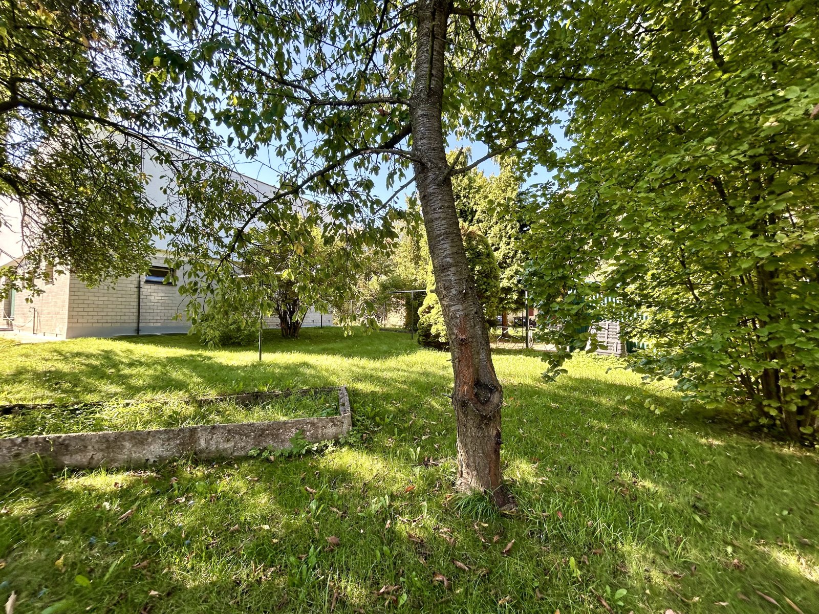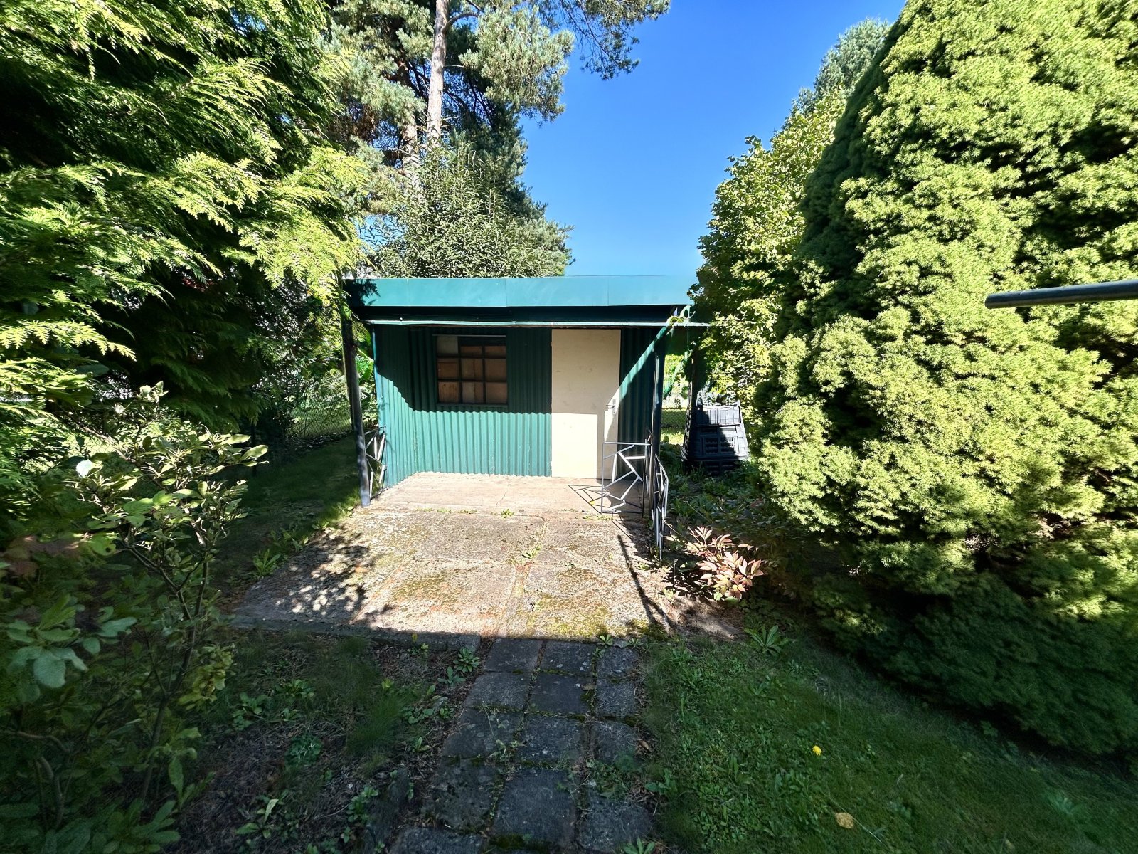 Zázemí okolo domu: vzrostlá zeleň, ovocné stromy, zahradní domek.