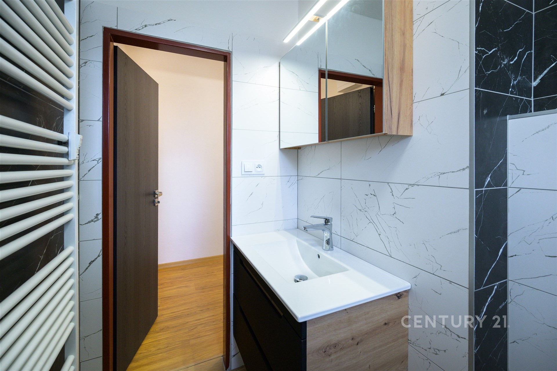 Interiér bytu prošel novou kompletní rekonstrukcí, která dosud nebyla užívána. Byly provedeny nové rozvody elektřiny i vody, nová okna, dveře, instalována kuchyňská linka a renovovaná koupelna. Kuchyňská linka je vybavena troubou, myčkou a digestoří. Podlahy tvoří parkety v obytných místnostech, vinyl v kuchyni a chodbě a keramická dlažba v koupelně. Vytápění je řešeno domovní plynovou kotelnou v domě.