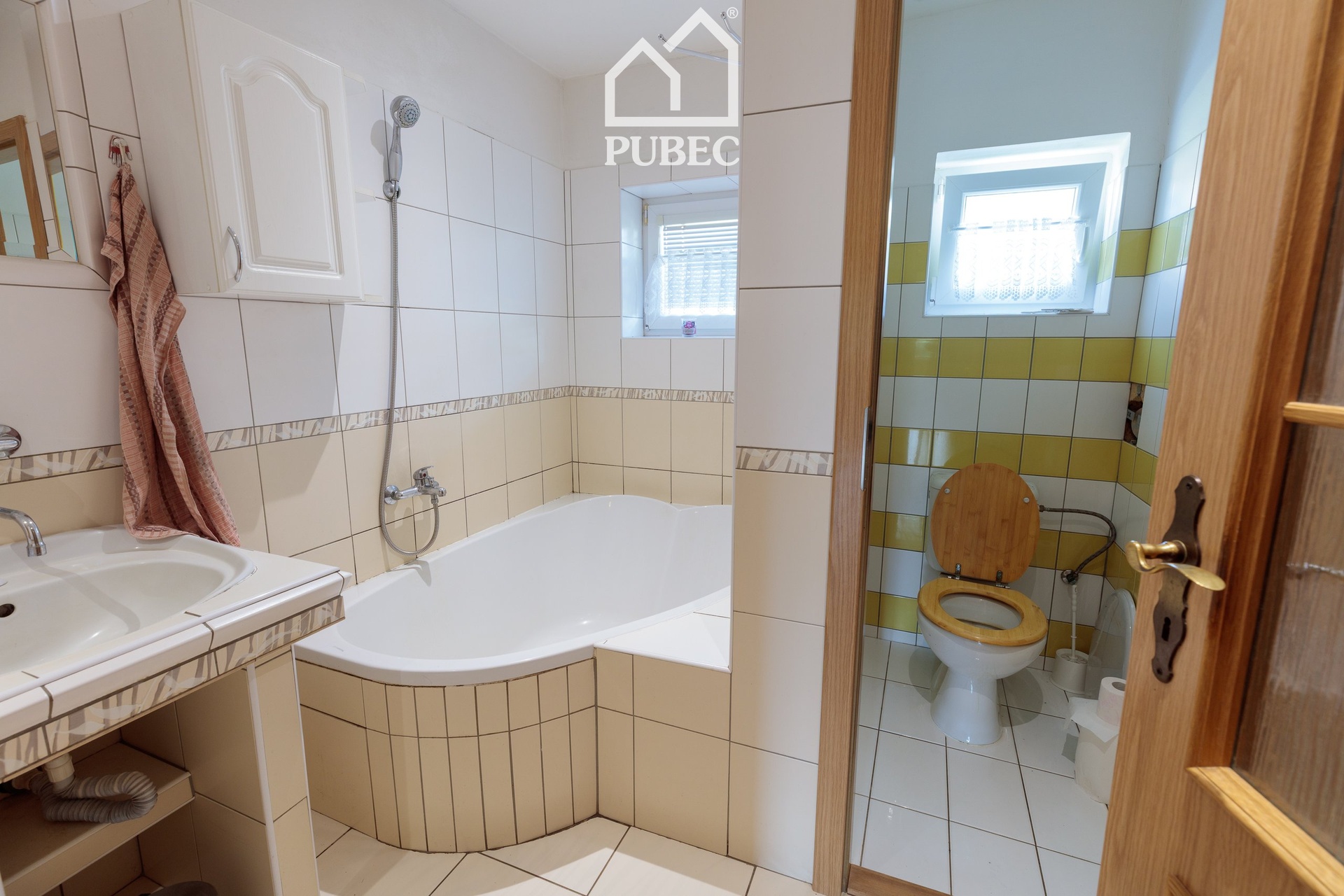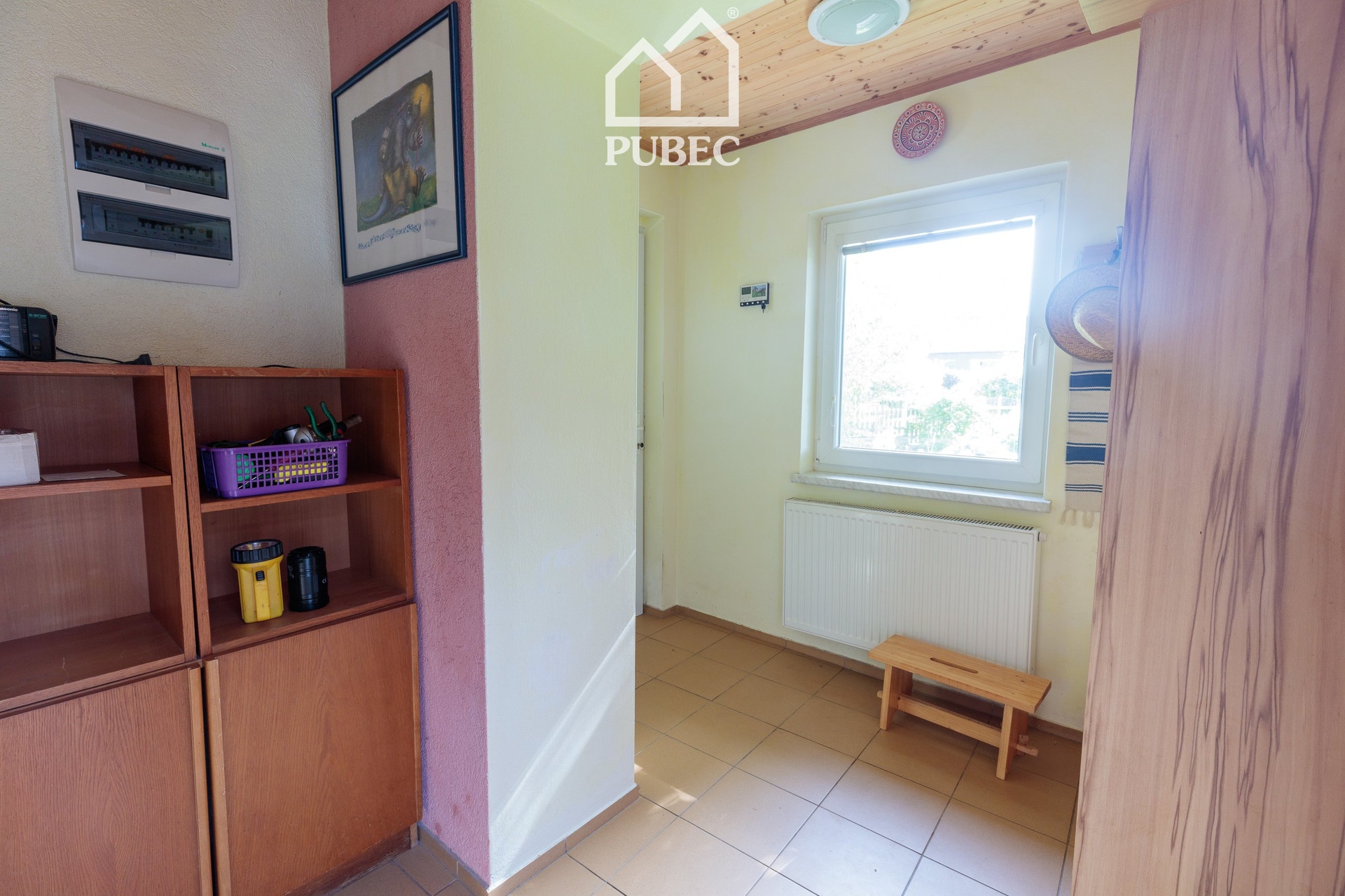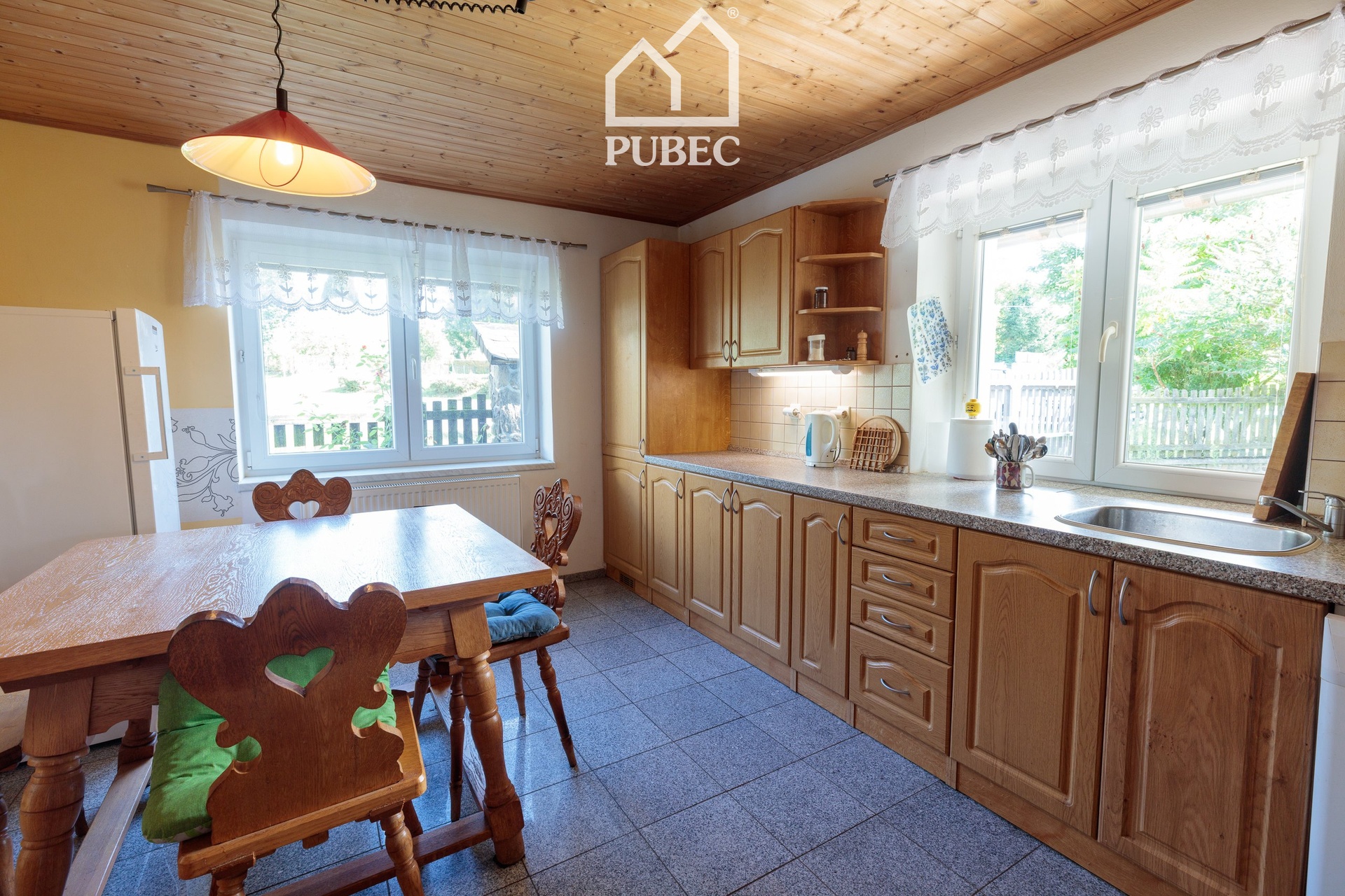 Kvalitně provedená zděná stavba je částečně podsklepená (1x sklepní místnost). Ve sklepním prostoru je umístěn moderní topný systém, který sestává z kotle Atmos (třída A+) a zásobníků na nahřátou vodu. V době, kdy kotel není v provozu, je teplá voda nezávisle ohřívána el. bojlerem. V 1. nadzemním podlaží se nachází zádveří, kuchyně, obývací pokoj s krbem, samostatné WC, koupelna s vanou. Ve 2. nadzemním podlaží je jeden větší pokoj s balkonem, 2 menší samostatné pokoje, koupelna s WC a sprchovým koutem. Stavební úpravou původní stavby vzniklo prostorné atrium využitelné pro posezení, stání pro auto či jako venkovní dílna a další 2 samostatné místnosti (1x zrekonstruovaná a 1x v původním stavu) umístěné v protější části původního domu.