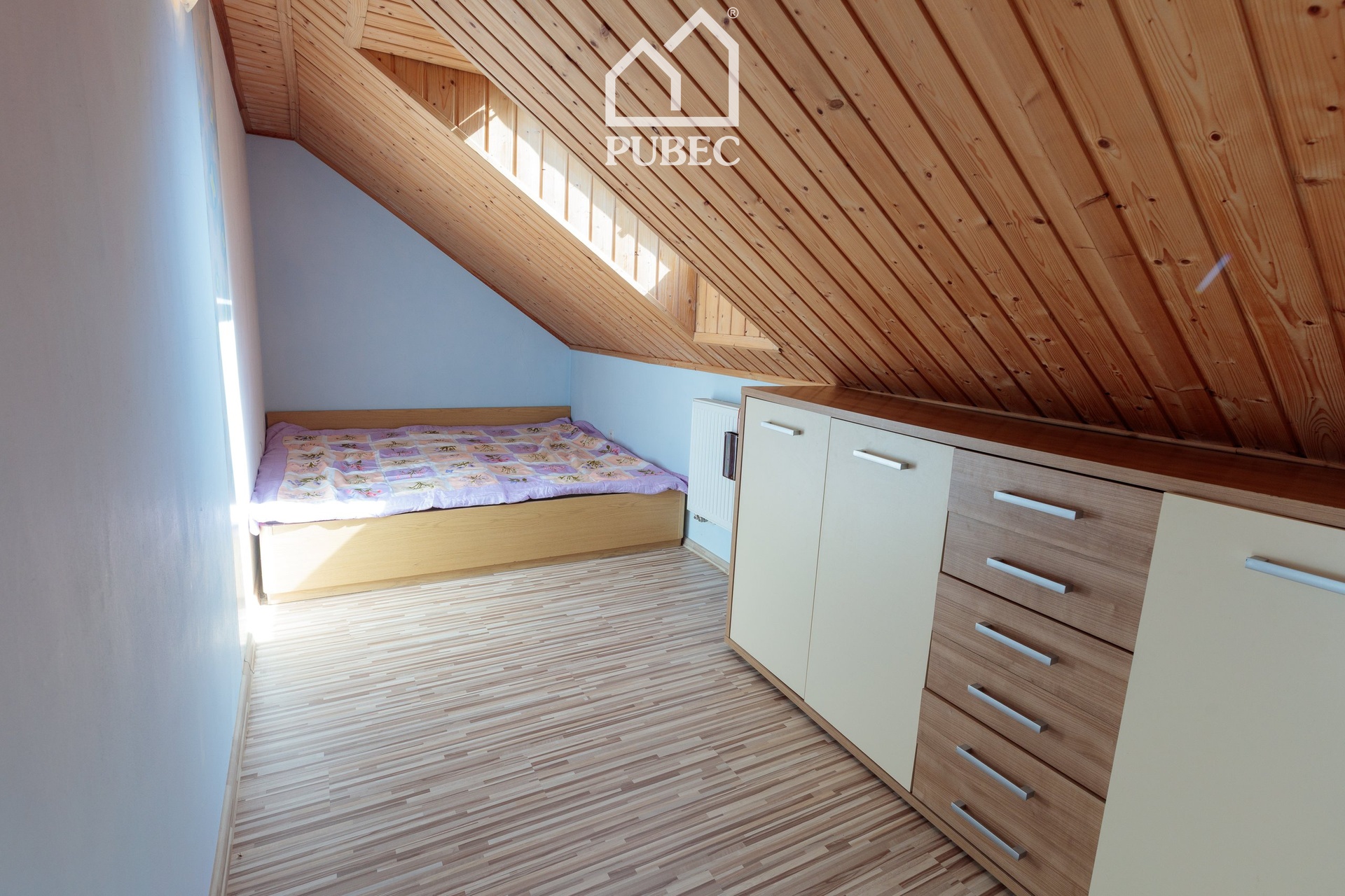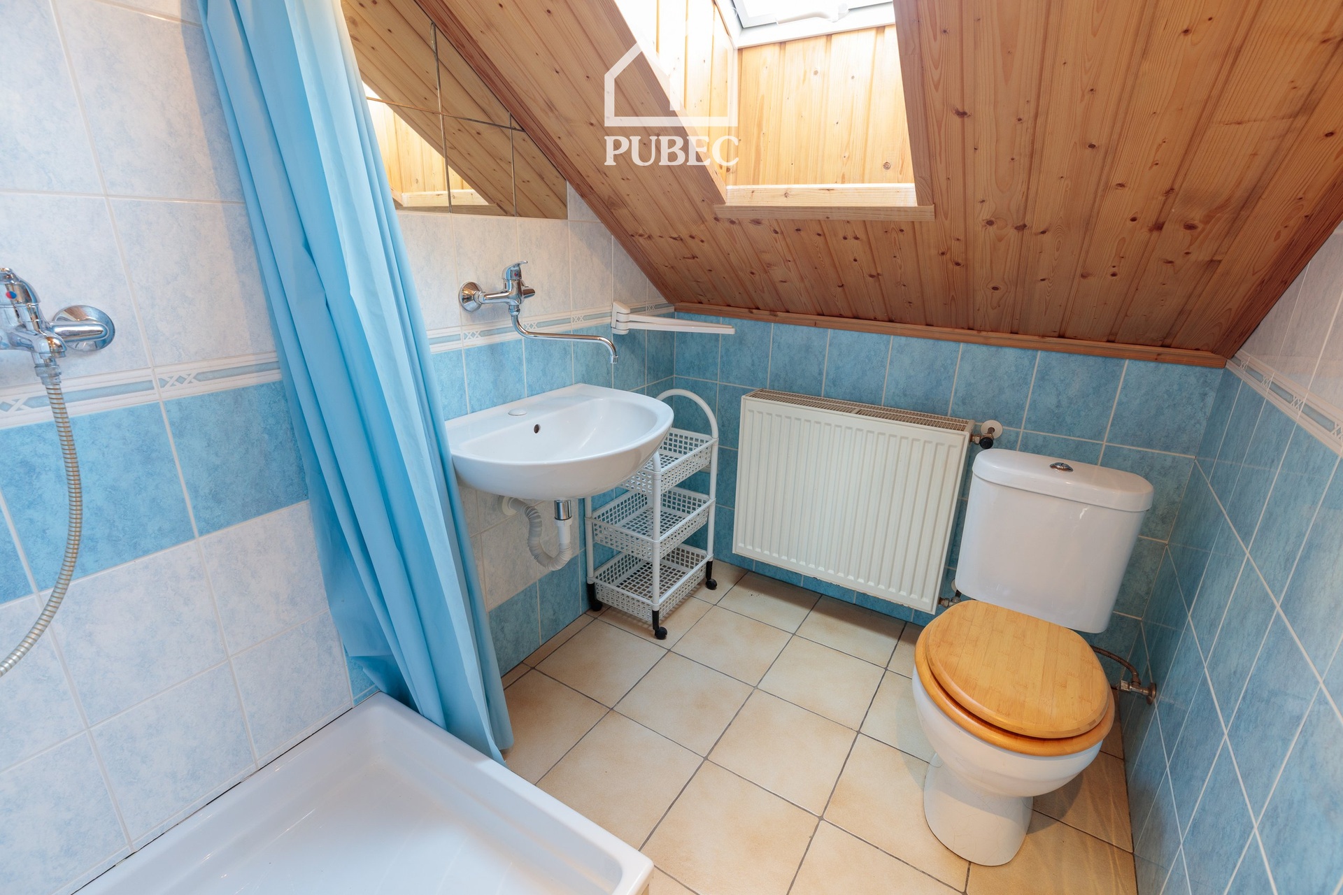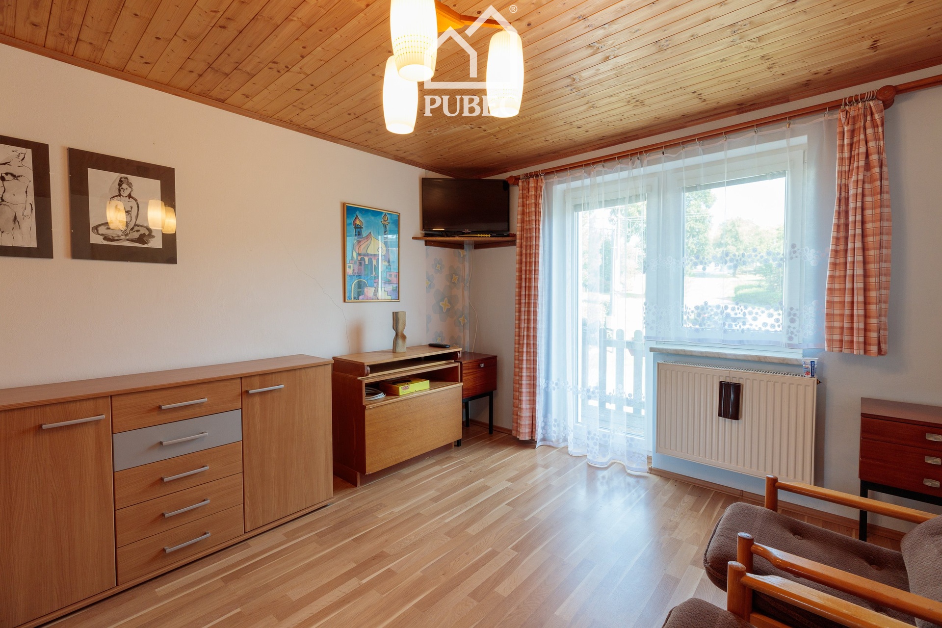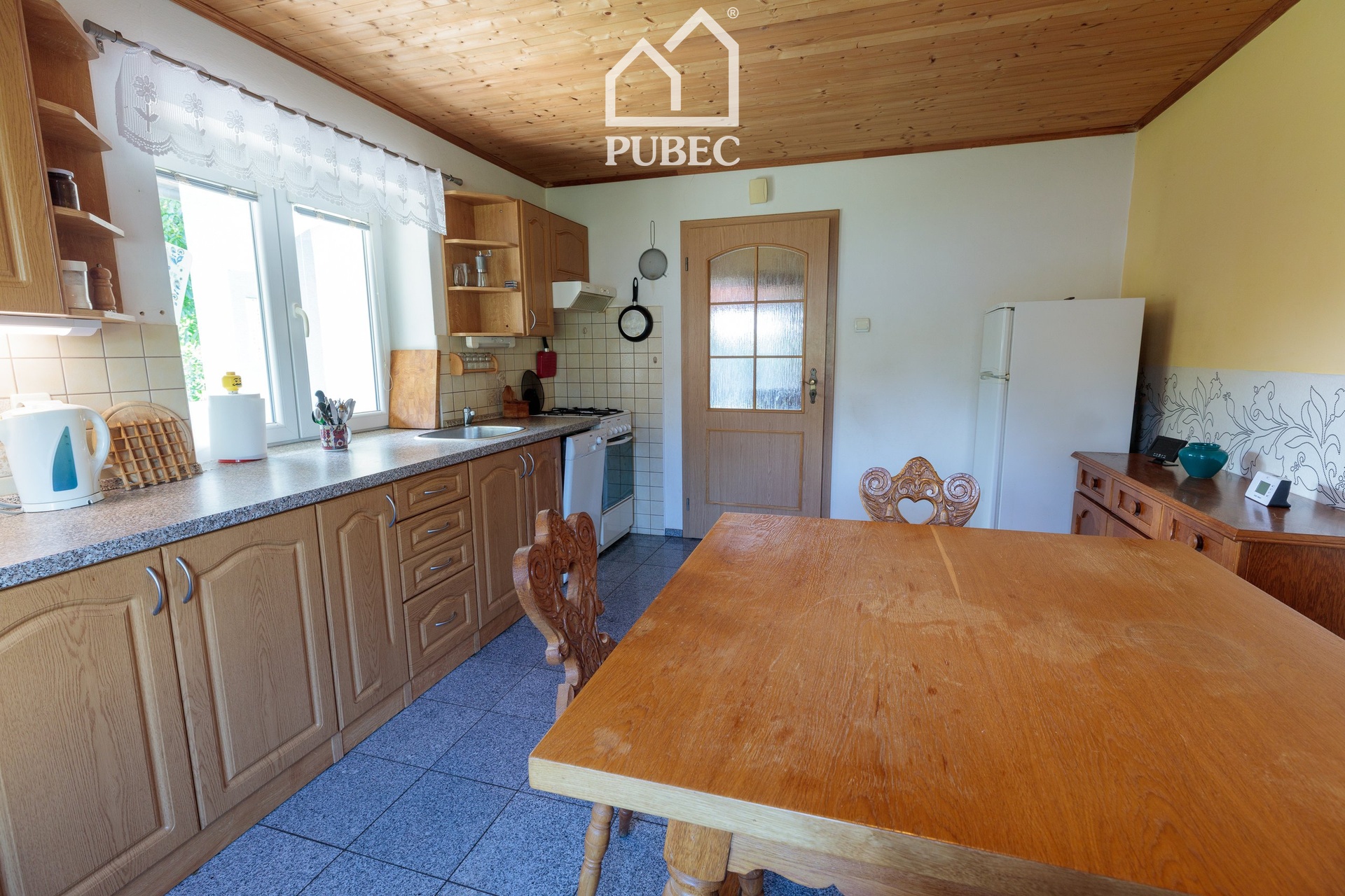 Kvalitně provedená zděná stavba je částečně podsklepená (1x sklepní místnost). Ve sklepním prostoru je umístěn moderní topný systém, který sestává z kotle Atmos (třída A+) a zásobníků na nahřátou vodu. V době, kdy kotel není v provozu, je teplá voda nezávisle ohřívána el. bojlerem. V 1. nadzemním podlaží se nachází zádveří, kuchyně, obývací pokoj s krbem, samostatné WC, koupelna s vanou. Ve 2. nadzemním podlaží je jeden větší pokoj s balkonem, 2 menší samostatné pokoje, koupelna s WC a sprchovým koutem. Stavební úpravou původní stavby vzniklo prostorné atrium využitelné pro posezení, stání pro auto či jako venkovní dílna a další 2 samostatné místnosti (1x zrekonstruovaná a 1x v původním stavu) umístěné v protější části původního domu.