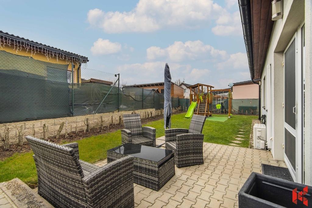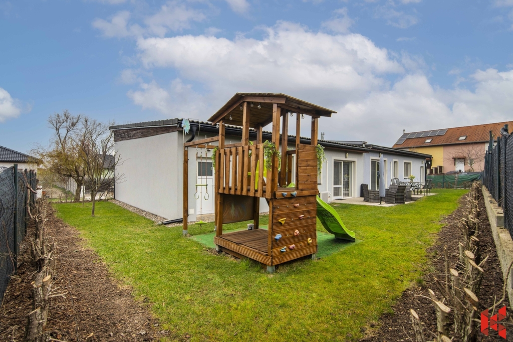 ✔ Slunečnou zahradu orientovanou na jih s terasou a dětskou prolézačkou