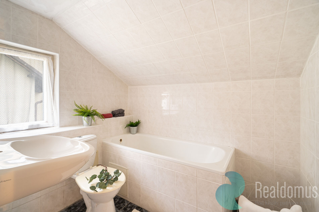 Rodinný dům o dvou nadzemních a jednom podzemním podlaží má dispozici 8+1 a užitnou plochu 164 m2. Po vstupu do domu hlavním vchodem ze zádveří je chodba se schodištěm do podkroví a sklepa. V prvním patře se nachází kuchyně s velkou jídelnou, kde jsou krbová kamna. Velký obývací pokoj je propojen s prosklenou, světlou přístavbou, která je využívána jako pracovna. Z obývacího pokoje je vstup do ložnice. V přízemí je větší koupelna se sprchovým koutem i vanou, toaletou a pisoárem. V patře jsou čtyři samostatné, neprůchozí pokoje, koupelna s vanou a komora. Celá obytná část tak lze rozdělit na dvě samostatné jednotky.