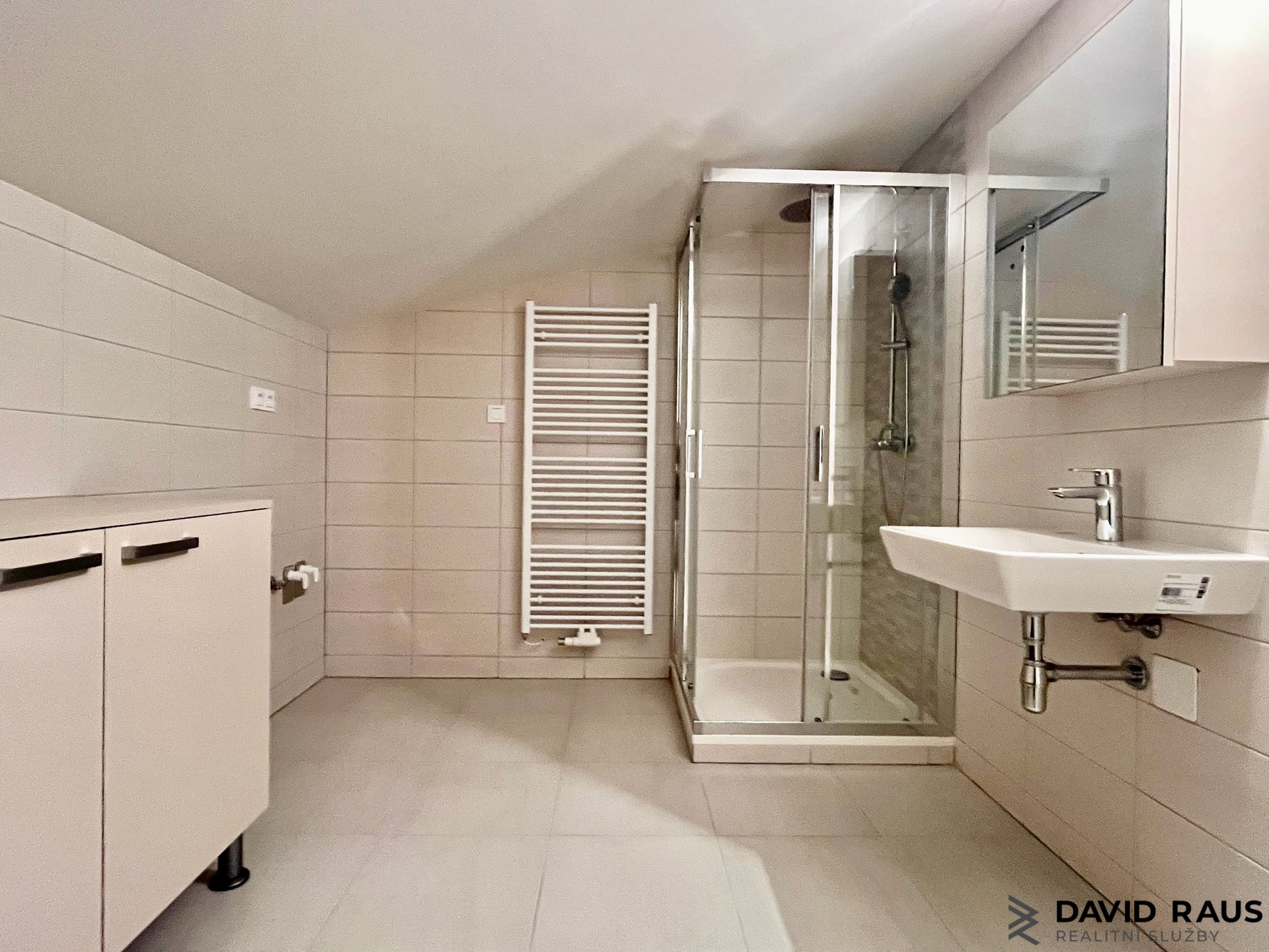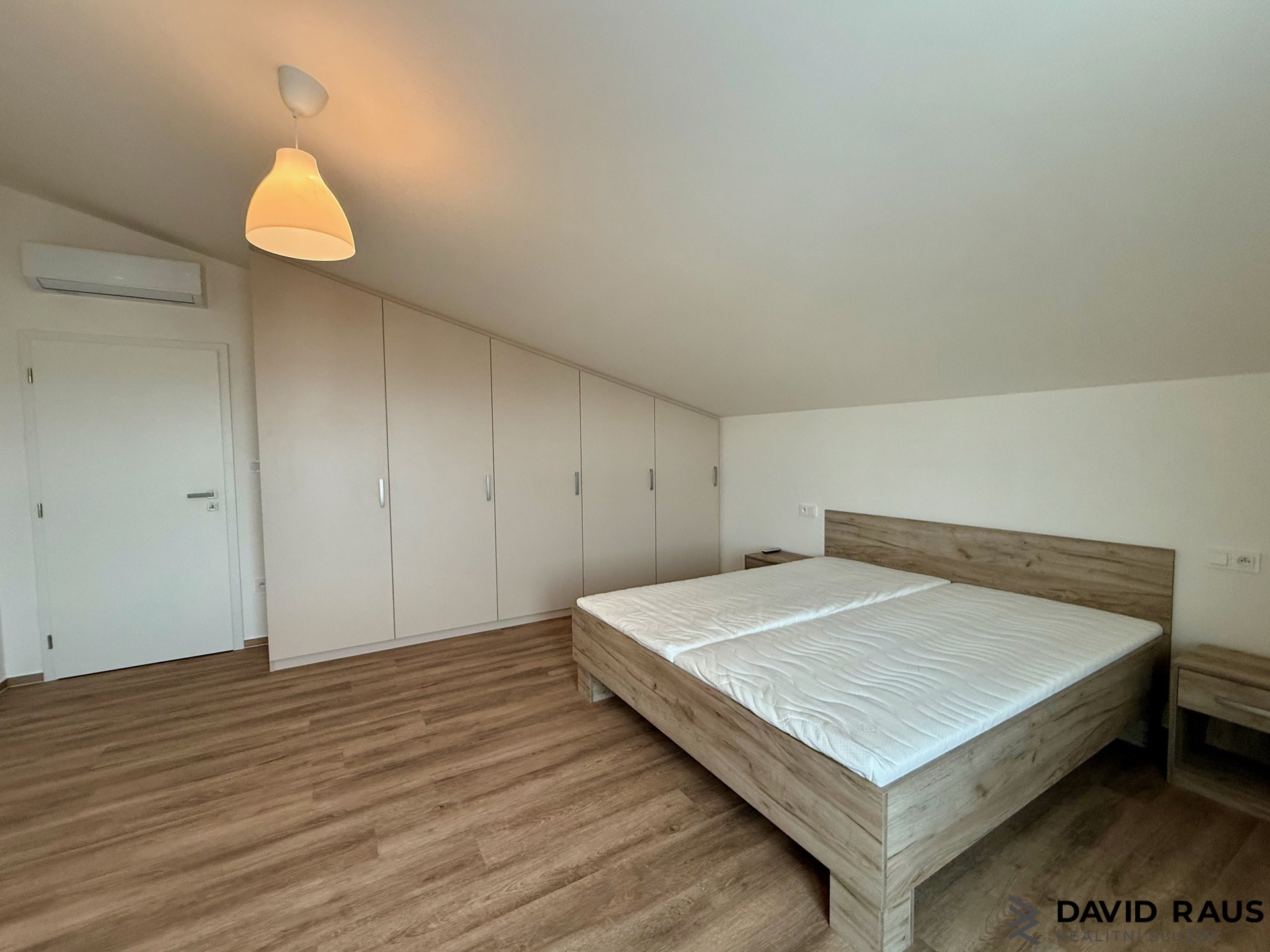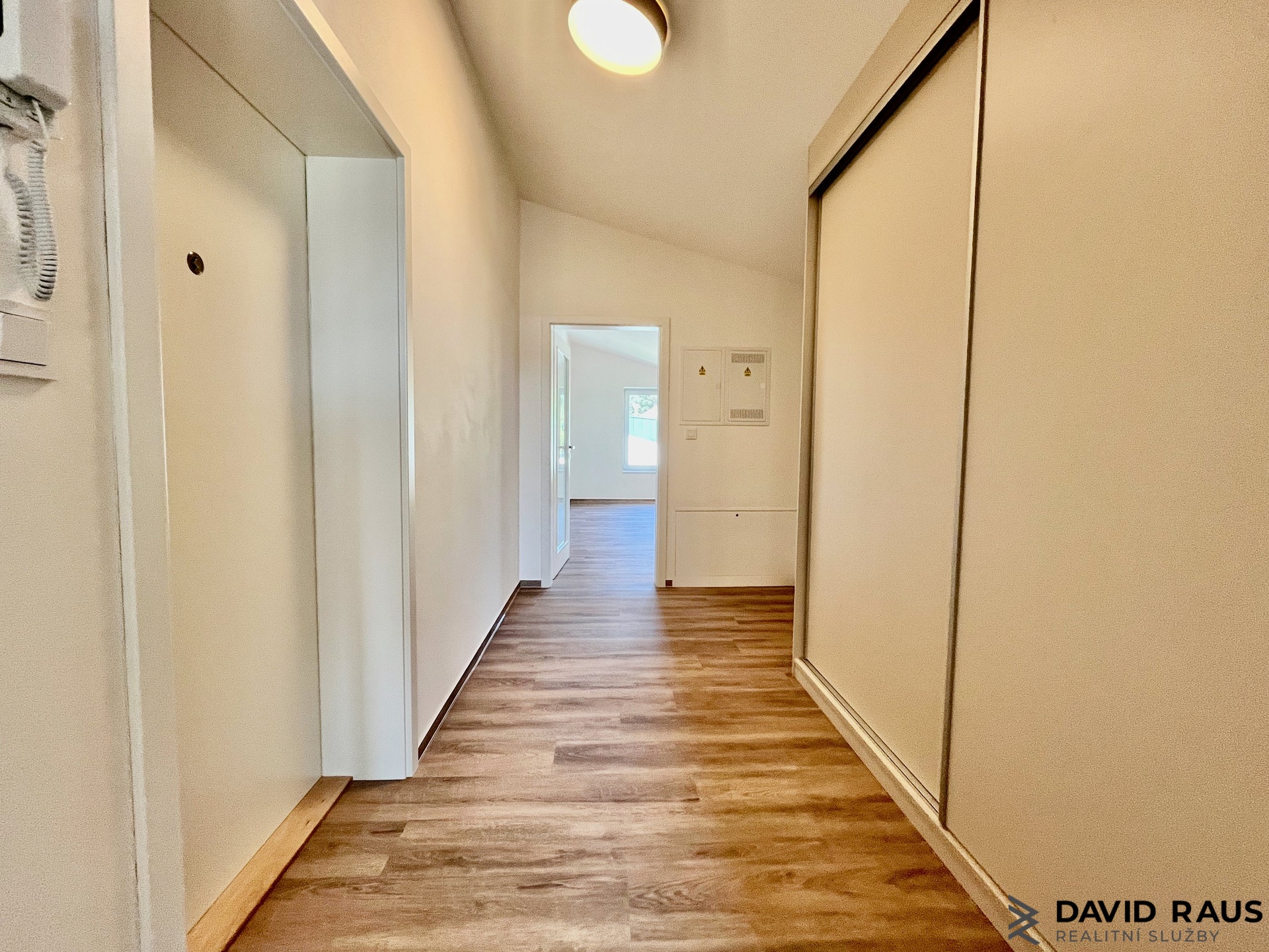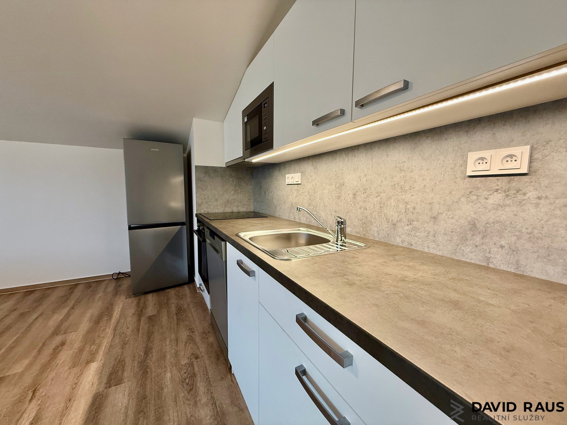 První naše kroky vedou do vstupní předsíně. Dostatek úložného prostoru nabízí na míru vyrobená vestavěná skříň. Z chodby dále pak vcházíme do koupelny s WC, kde pohodlně umístíte nejen pračku i sušičku. Z koupelny zpět přes předsíň vedou naše kroky do obývacího pokoje s kuchyňským koutem, vybaveném moderní kuchyňskou linkou. Nechybí nové kvalitní elektrospotřebiče: elektrická trouba, varná deska, myčka nádobí, digestoř, samostatně stojící lednice s mrazákem. Kuchyně je dispozičně velmi dobře zrealizovaná a chytře využívá prostor na maximum. Z obývacího pokoje míří naše kroky do druhého obytného pokoje. O nedostatek úložného prostoru se zde bát opravdu nemusíte. Po celé levé stěně při vstupu do pokoje majitelé nechali vyrobit na míru vestavěnou skříň se zrcadlem, která však celý prostor nikterak nezmenšuje. Součástí vybavení je i manželská postel. Vinylové podlahy v hřejivém tónu s elegantní bílou výmalbou stěn, minimalisticky zvolený design vestavěného nábytkem nabízí komfortní a stylové bydlení i pro ty nejnáročnější klienty.