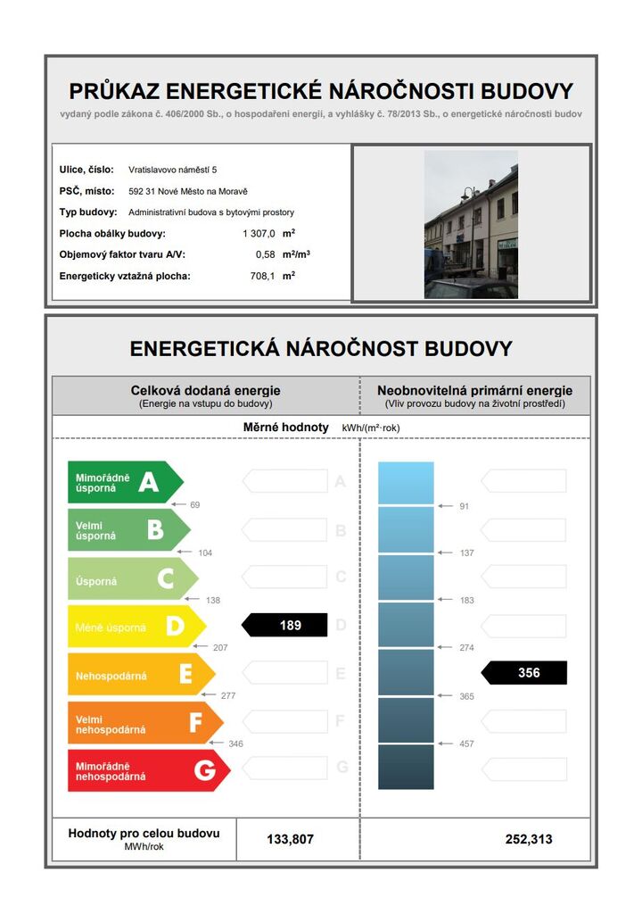 - Energetický ukazatel podle vyhlášky: č. 78/2013 Sb.