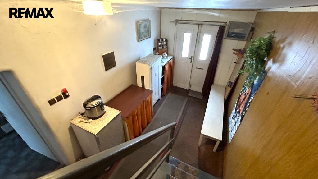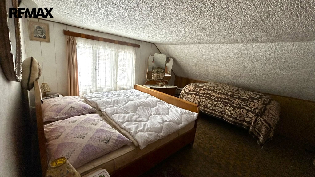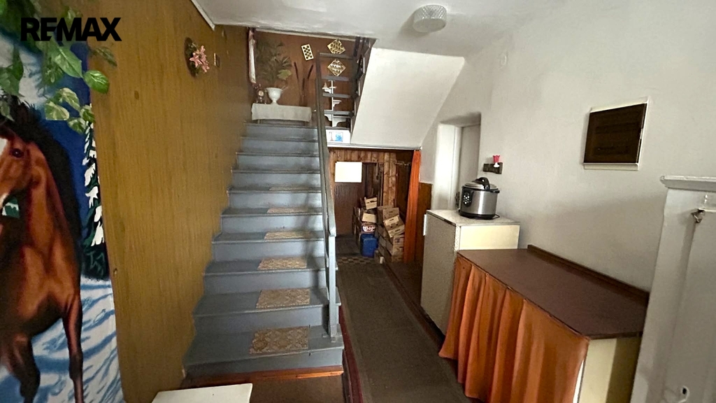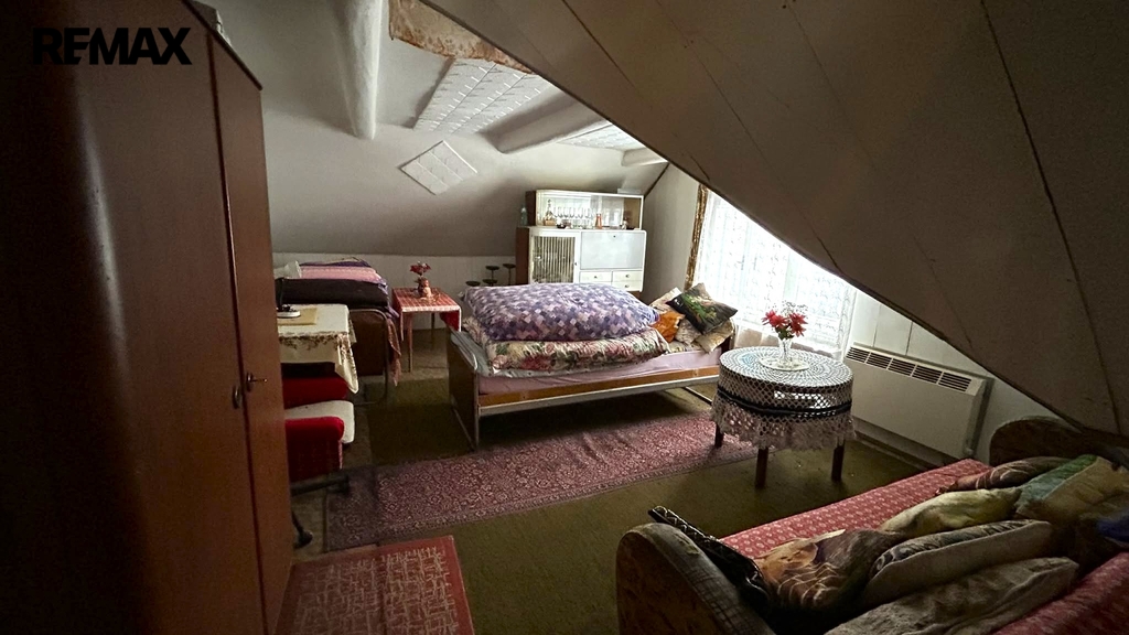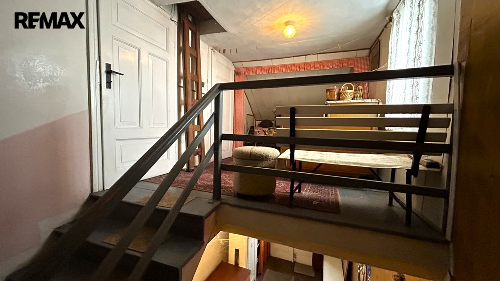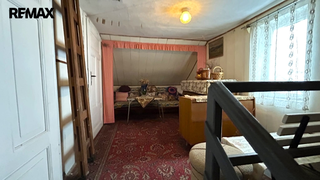 Dispozice domu: V přízemí, kde se nachází vstupní chodba je též obývací pokoj, kuchyň, prostorná koupelna, samostatné WC a vstup do sklepa a zadní vchod na zahradu. V podkroví se nachází malá hala a dvě další místnosti. Na zahradě vedle garáže stojí kůlna. Nemovitost je ve stavu před kompletní rekonstrukcí.