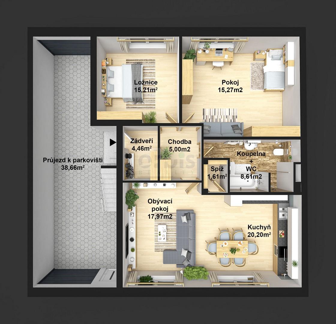 - Dispozice bytu: 3+kk