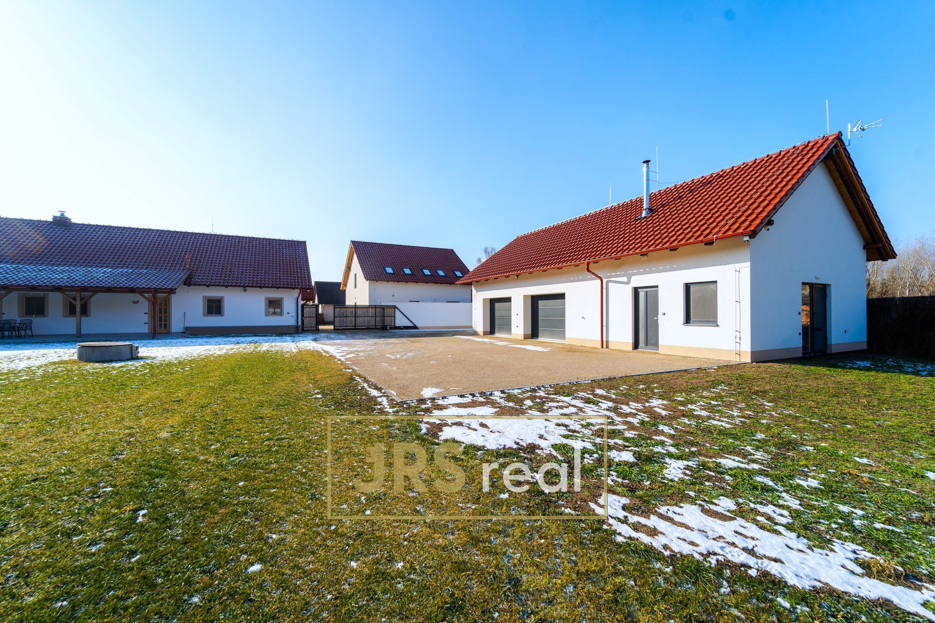 Velkou přidanou hodnotou je pravidelný pozemek o celkové výměře 2 699 m², který zajišťuje vysokou míru soukromí a široké možnosti využití. U domu se nachází terasa o ploše cca 60 m² a na zahradě dvojgaráž o velikosti 105 m² se samostatnou místností s posezením, vytápěnou krbovými kamny a s francouzským oknem. Na pozemku je dále samostatná dílna s garážovými vraty a původní medovna, která nabízí možnost přestavby například na domácí wellness, ateliér, fitness nebo pracovnu. Všechny vedlejší stavby jsou řádně zapsány v katastru nemovitostí.