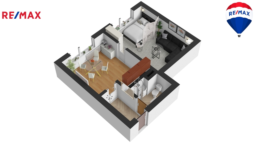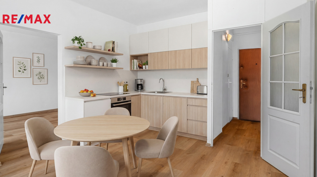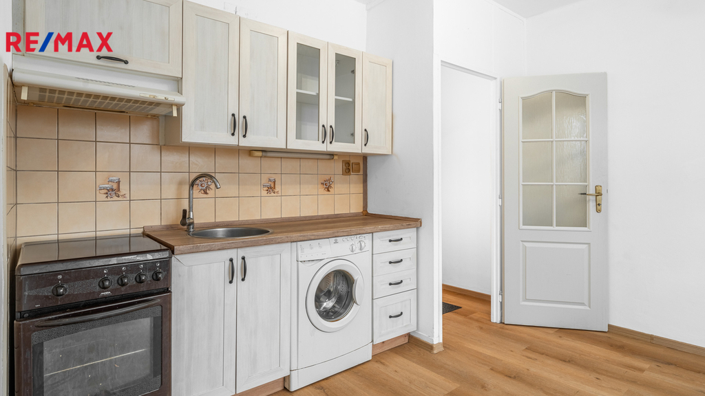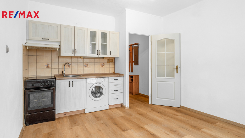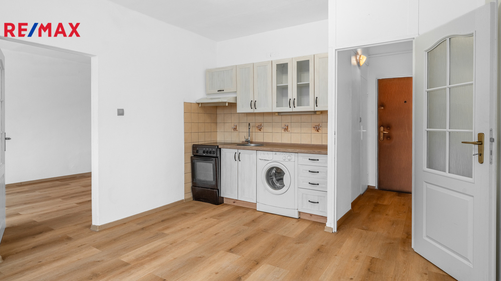 Dispozice: samostatná kuchyň s kuchyňskou linkou, obytný pokoj, předsíň a koupelna se sprchovým koutem a toaletou. Byt je aktuálně obyvatelný a může posloužit ihned (např. jako startovací bydlení), zároveň ale nabízí prostor pro modernizaci či rekonstrukci podle vlastních představ – v dobrém místě se takové úpravy vyplatí. Stav je z větší části původní, včetně původního umakartového jádra. Byt má nové podlahy a vnitřní dveře. Dům prošel celkovou revitalizací a je zateplený.