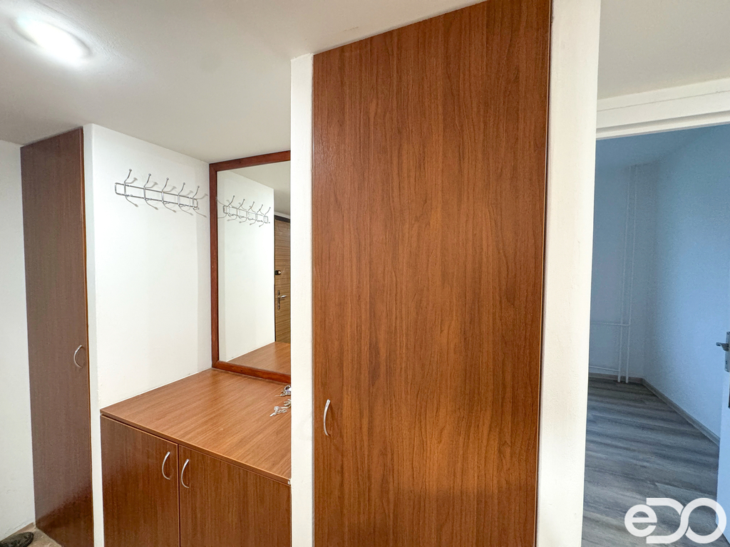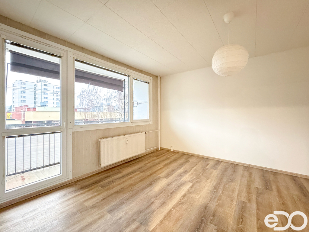 Byt bude předáván vyklizen (zůstává linka, vestavný nábytek, skříň v ložnici).