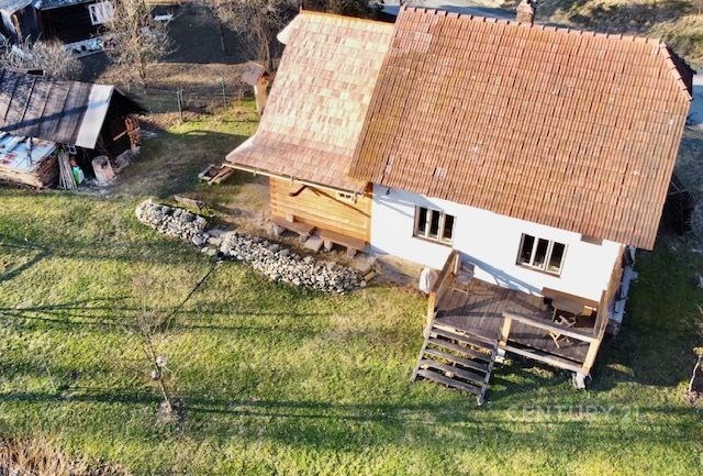 Dvoupodlažní dům je situován v klidné části obce s krásným výhledem na okolní krajinu. Součástí domu je také sklep a terasa, která přímo vybízí k odpočinku a relaxaci. Zahrada a potok na hranici pozemku obohacuje nemovitost o další příjemné místo pro volný čas.
