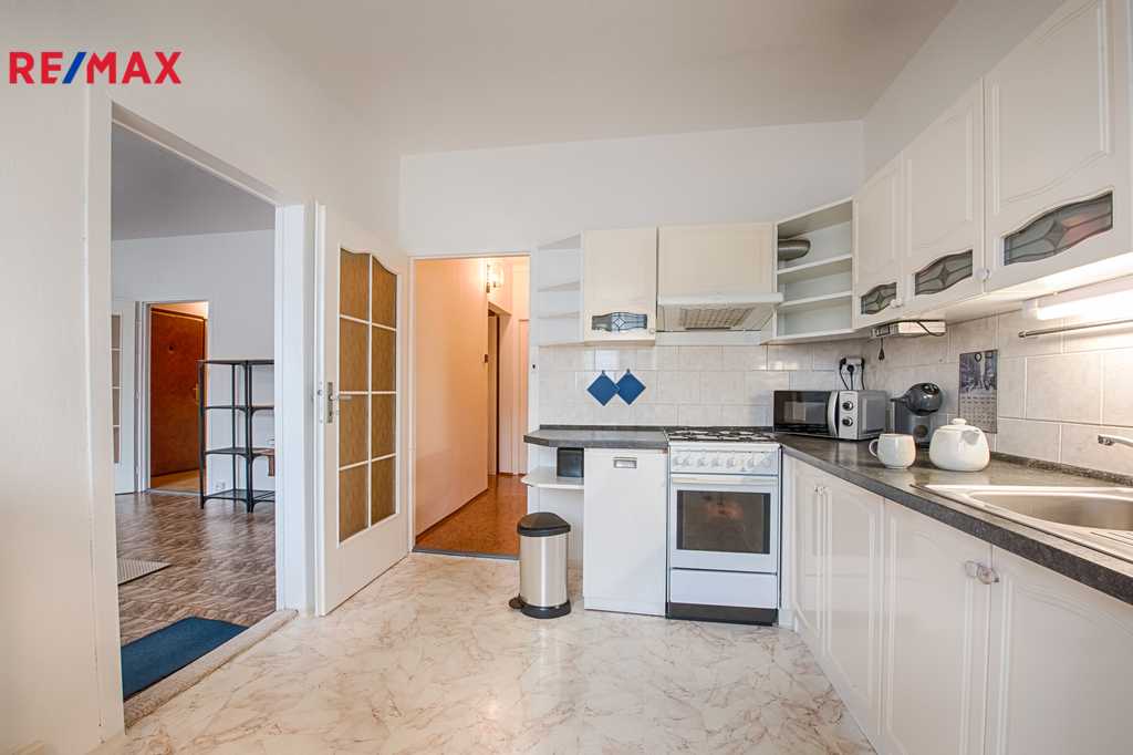 Byt je v udržovaném stavu. Jádro je umakartové, kuchyňská linka z roku 2005, podlahy v pokojích tvoří lino a koberce. Díky orientaci na jihovýchod (kuchyně a obývák) je byt světlý a příjemně prosluněný po celý den. Původní stav představuje ideální příležitost pro kompletní rekonstrukci dle vlastních představ, ať už hledáte rodinné bydlení nebo investici.