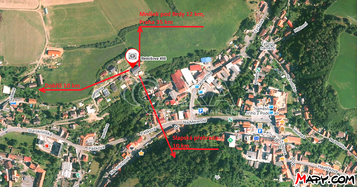 Nový Knín je poklidné historické městečko ležící na řece Kocábě, kterou dodnes milují trampové, na jeho hornickou minulost je možné zavzpomínat v tamním Muzeu zlata. Ve městě je zajištěna veškerá potřebná vybavenost - MěÚ, lékaři, obchody, restaurace, MŠ, ZŠ, autobus. spojení na Dobříš (10 km), do Mníšku pod Brdy (12 km), do Prahy (35 km). Slapská přehrada je vzdálená cca 10 km. Uvedené výměry jsou orientační. Pro další informace pište nebo volejte na níže uvedené kontakty.