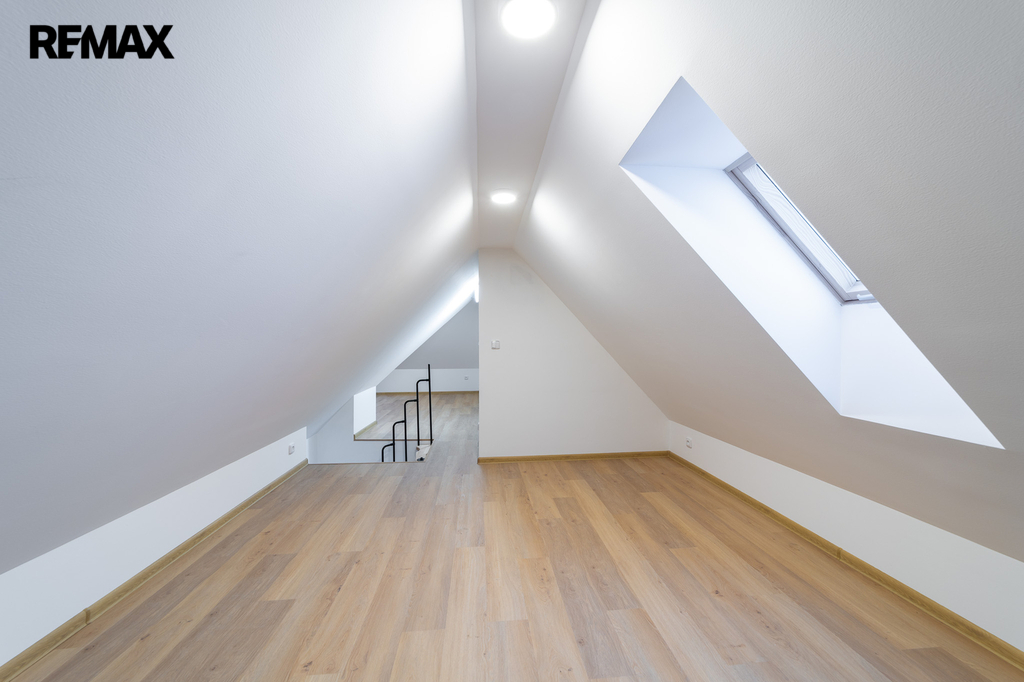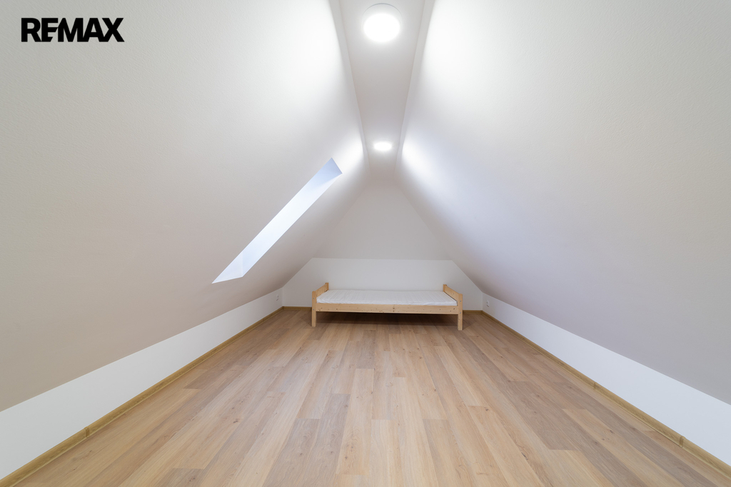 Do 3. NP vede menší kruhové schodiště, které ústí do otevřeného prostoru určeného pro spaní o výměře 32,65 m². Tento prostor zatím není vytápěn a hned vedle něj se nachází další půdní část o výměře 21,48 m², kterou lze využít například jako sklad nebo další zázemí. Celek působí vzdušně a nabízí překvapivě variabilní využití podle potřeb nového majitele.