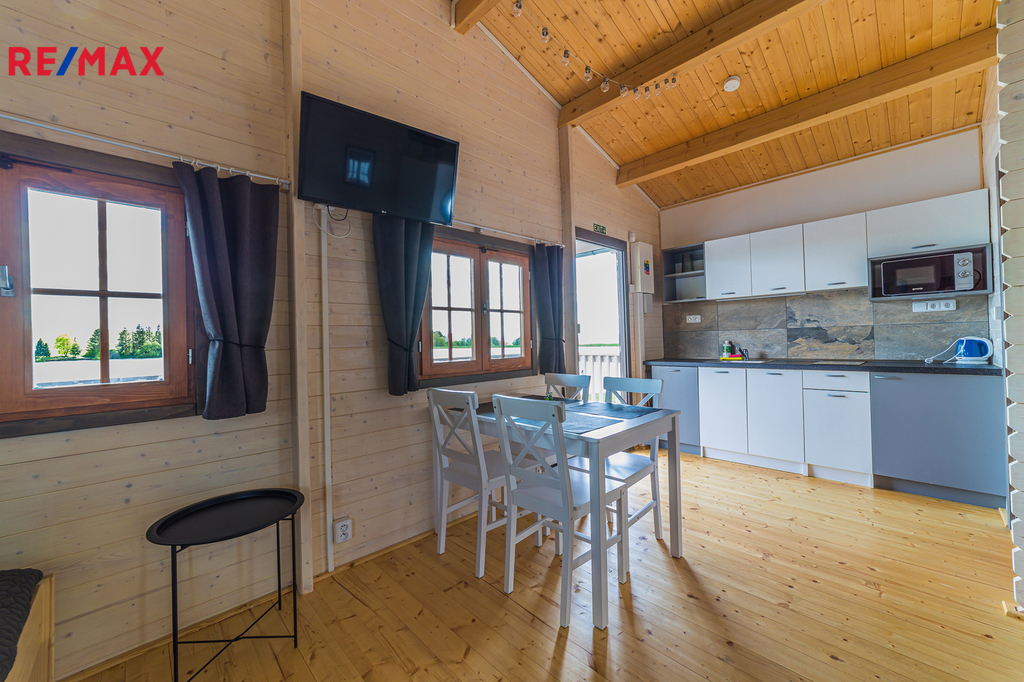 1 provozní chatka - Slouží jako zázemí recepce pro pohodlný chod resortu.