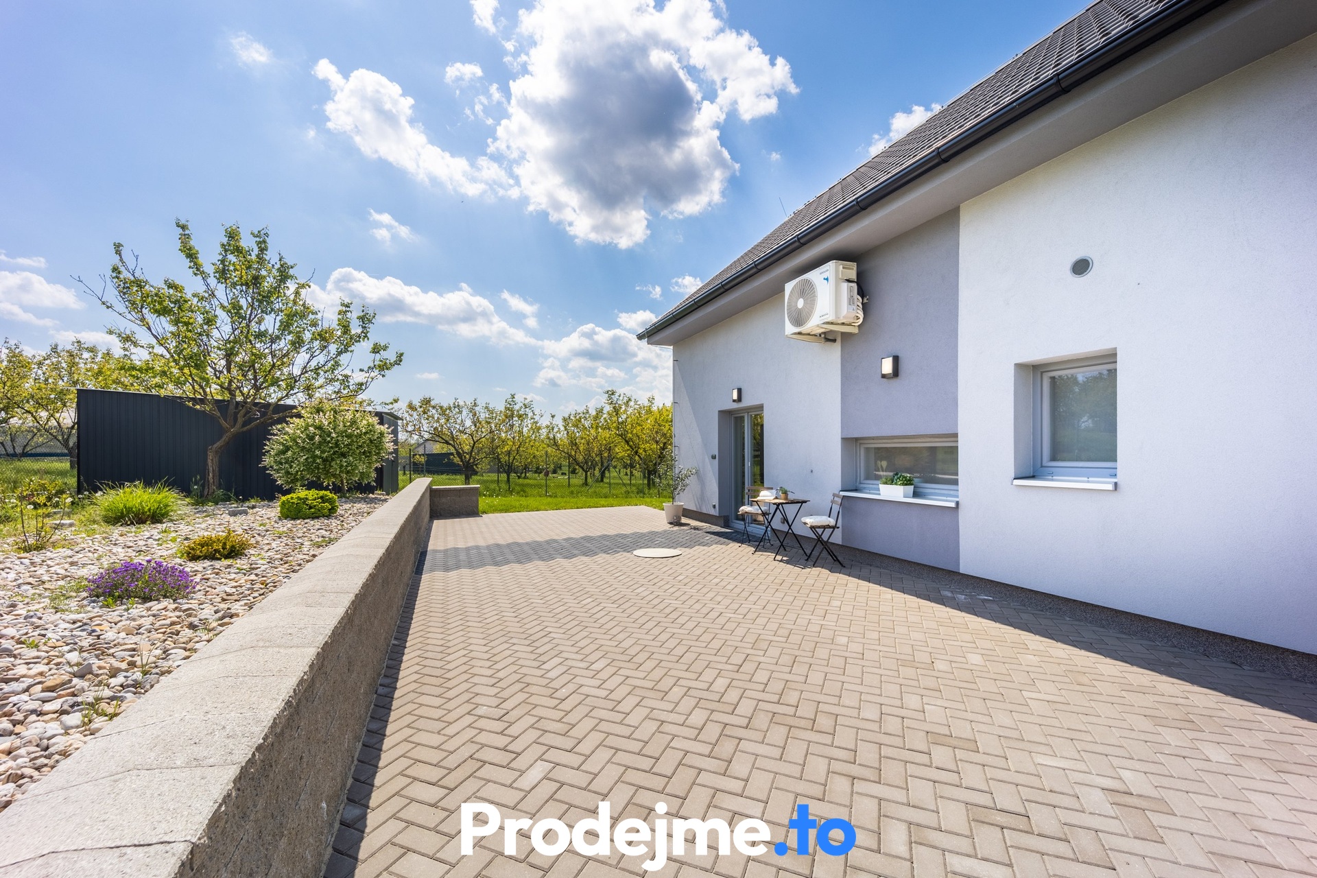 Poloha uprostřed přírody s krásným výhledem a pozemkem o výměře 1077 m2 napovídá, že bydlení zde bude opravdu pohodové. Relax po práci si můžete dopřát hned na 2 velkých terasách - v zadní a přední části domu. Obě z nich bez problému pojmou venkovní posezení i pro větší návštěvy a poskytnou také místo pro grilování. Na zadní terasu navazuje okrasná skalka. Zbytek rovinatého pozemku patří zatravněné ploše s několika ovocnými stromy.