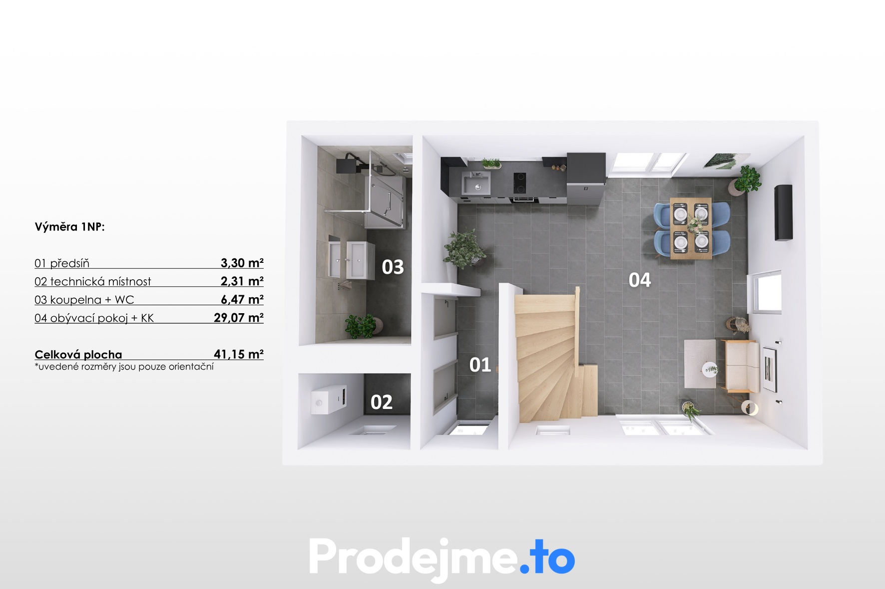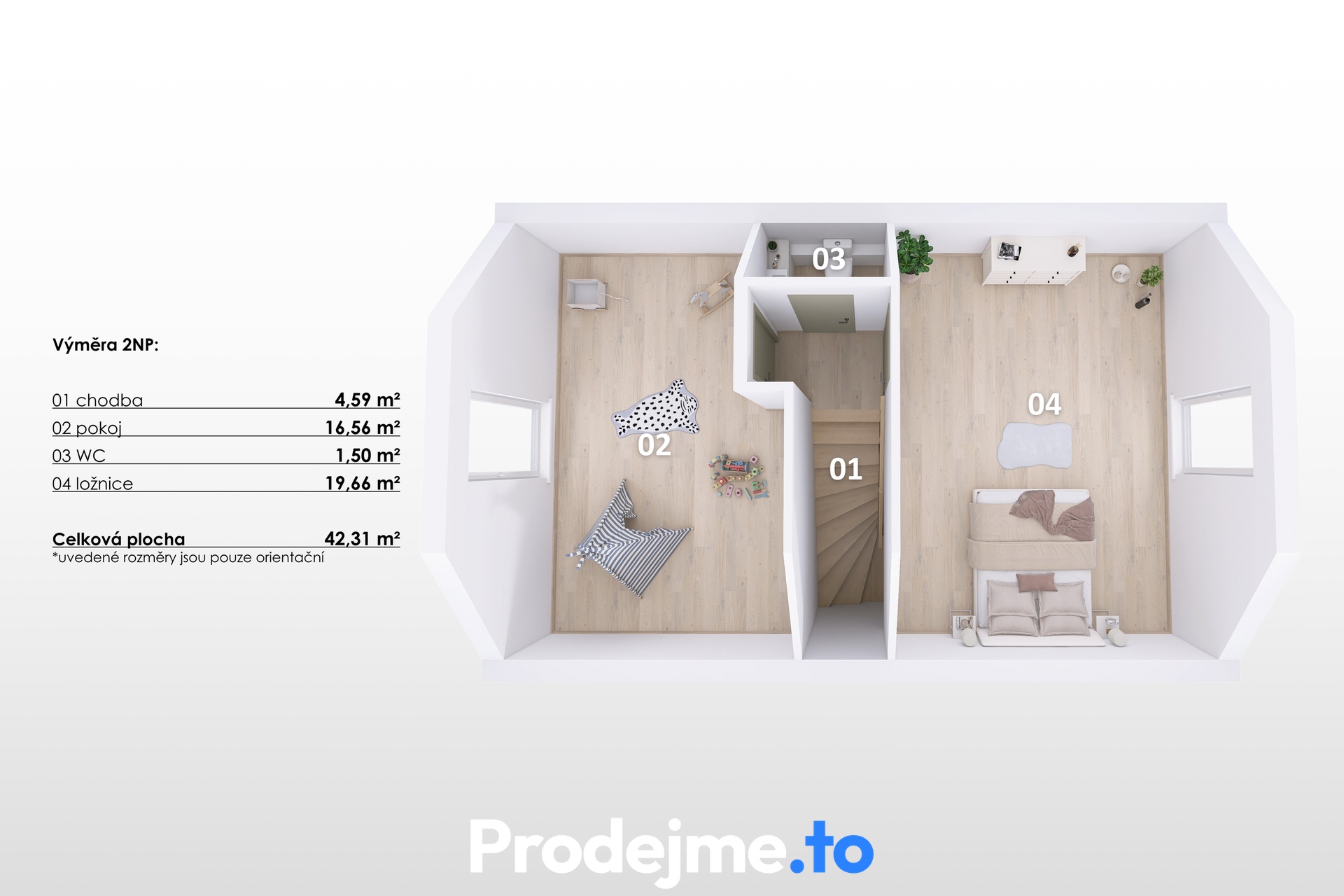 Dům s obytným podkrovím vás hned za předsíní přivítá velkým otevřeným prostorem obývacího pokoje s plně vybaveným kuchyňským koutem. Jedinečnou atmosféru místnosti tvoří nadstandardní prosvětlenost a přiznané stropní trámy. Z obývacího pokoje budete mít zároveň vstupy na zadní i přední terasu. V přízemí dále najdete technickou místnost a koupelnu se sprchovým koutem a toaletou. Obytné podkroví nabízí prostornou ložnici, dětský pokoj a pro větší pohodlí i samostatnou toaletu.