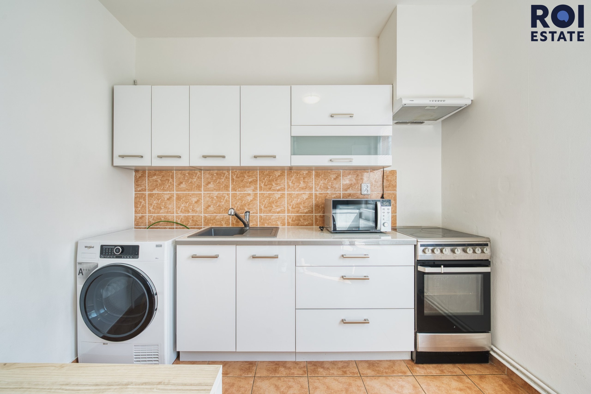 Vybavení: kuchyňská linka, lednice, sporák, sušička na prádlo, pračka, mikrovlnka. Podlahová krytina plovoucí podlahy a dlažba.