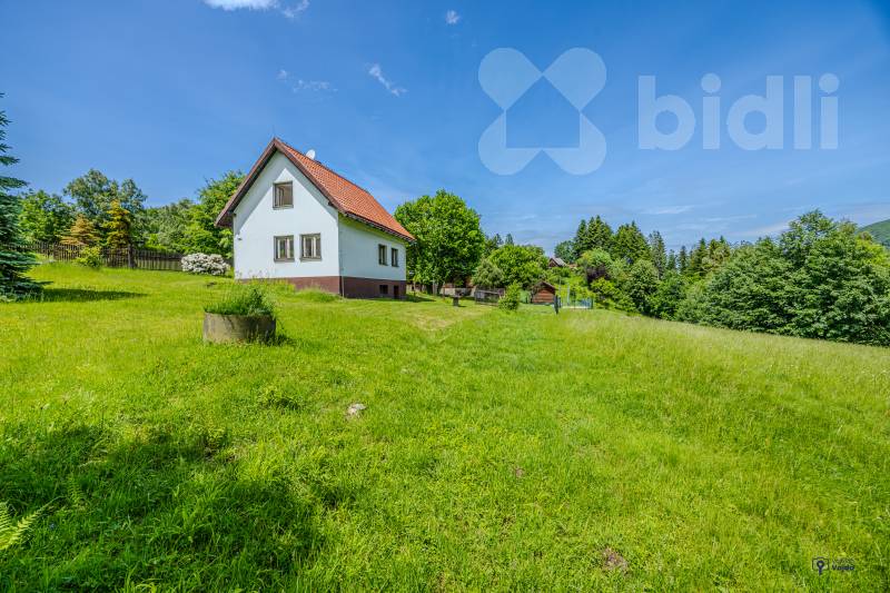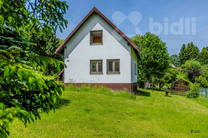 Pokud hledáte klid, čistý vzduch a blízkost přírody, pak pro Vás máme ideální místo. Jedná se o zděný rodinný dům o dispozici 3+kk se zahradou o výměře 1 000 m2. Dům má dvě nadzemní podlaží a sklep.