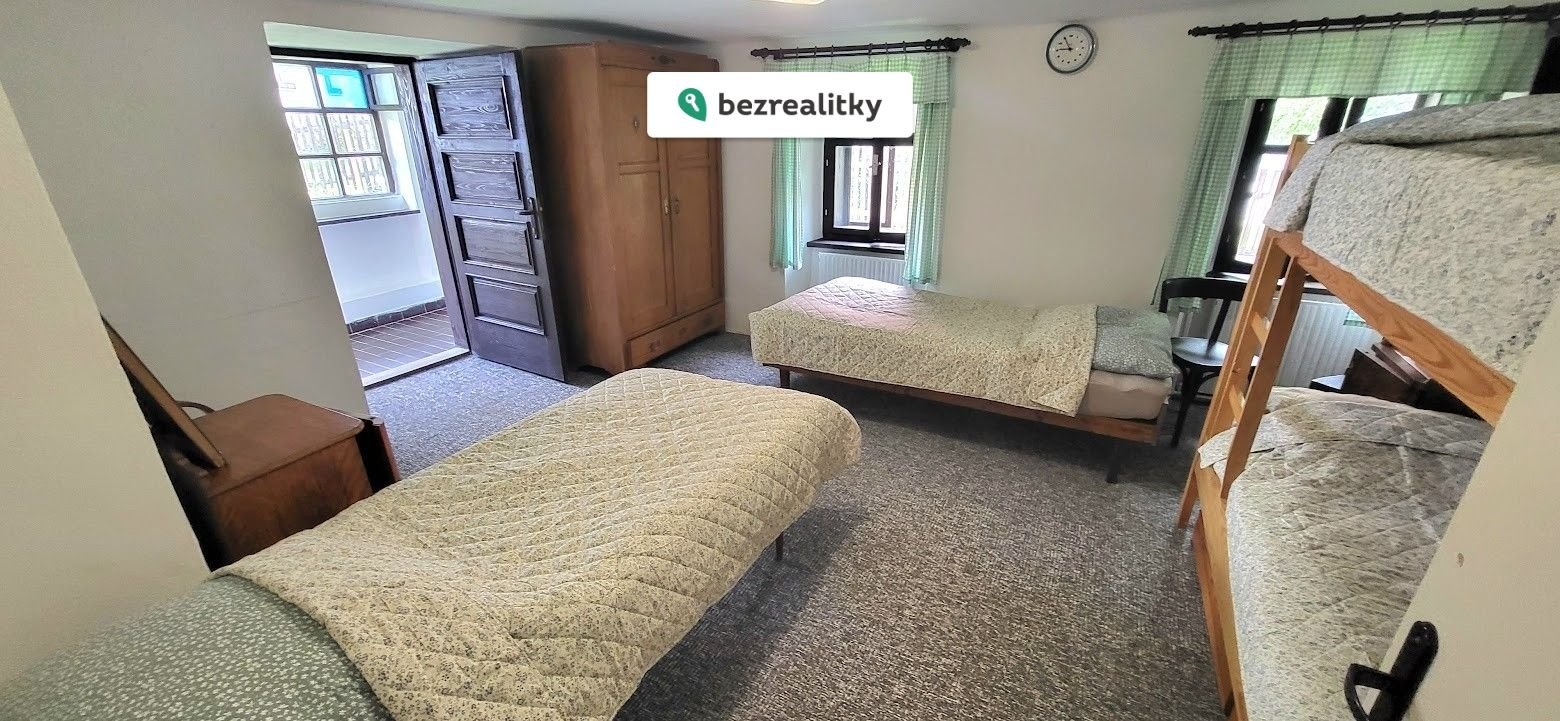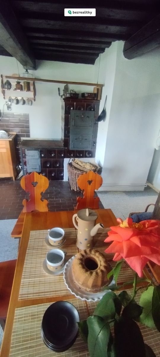 4+kk: 2 ložnice, 1 místnost pro relax (herna), hlavní obývací místnost s funkčními kachlovými kamny a kuchyňským koutem, koupelna s vanou, samostatné WC, krásný klenutý prostorný sklípek (spižírna, vinotéka) přímo v chalupě. Stodola (dřevo, úschovna na kola, běžky), technická místnost (kotelna). Obecní vodovod, elektřina (vytápění elektrokotlem, rozvedeno po domě - radiátory, lze zapnout přes mobil na dálku, je zde i druhý kotel na dřevo, úsporná sazba D57d pro el. kotel zavedena), kanalizace (splachovací wc). Zavedené na pronájmy v turistice + pronajatá přilehlá parcela p.č. 66 (130 m²) za symbolickou cenu od obce hned za chaloupkou (desítky let k užívání). Skvělá investice. Blízko top atrakcí: