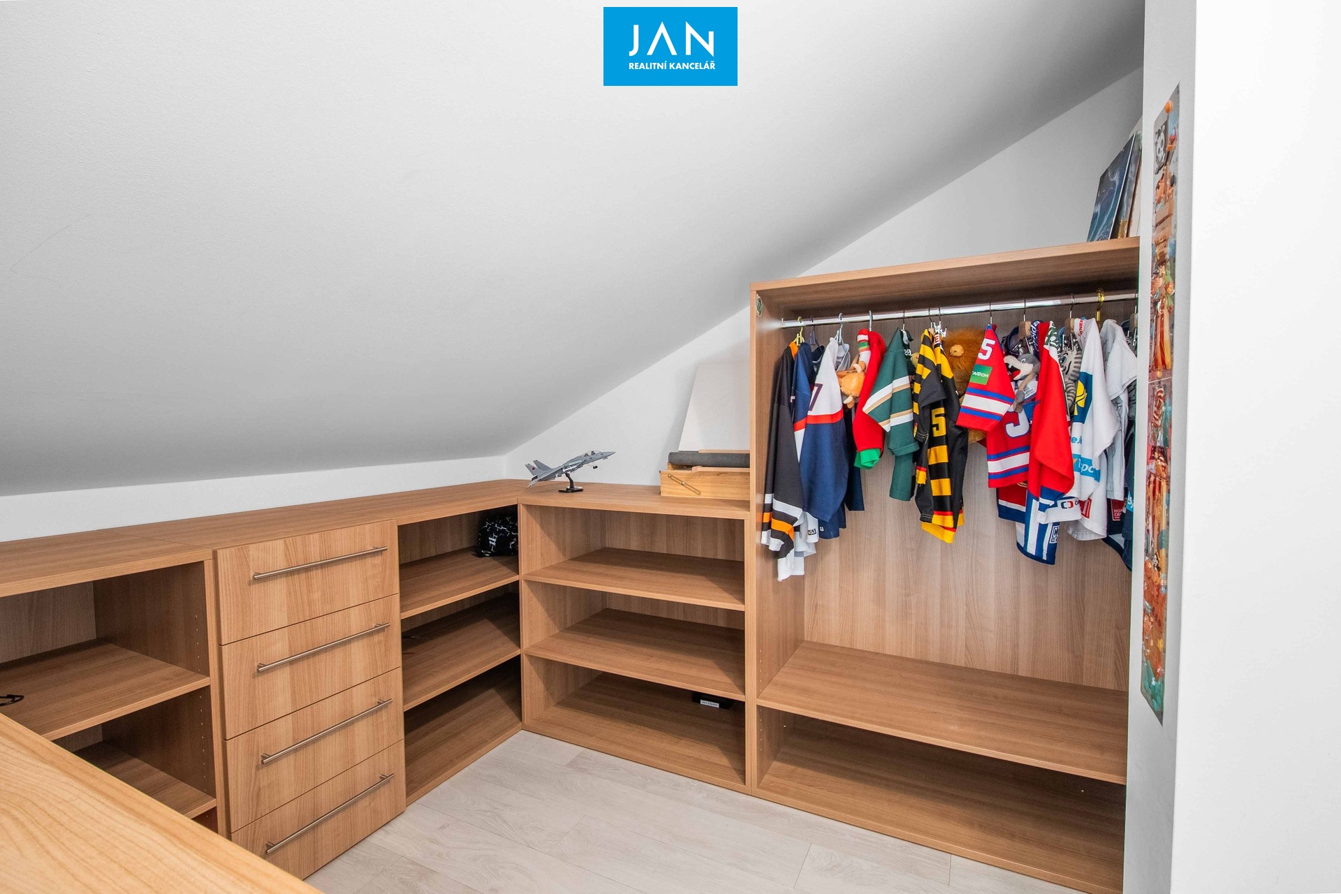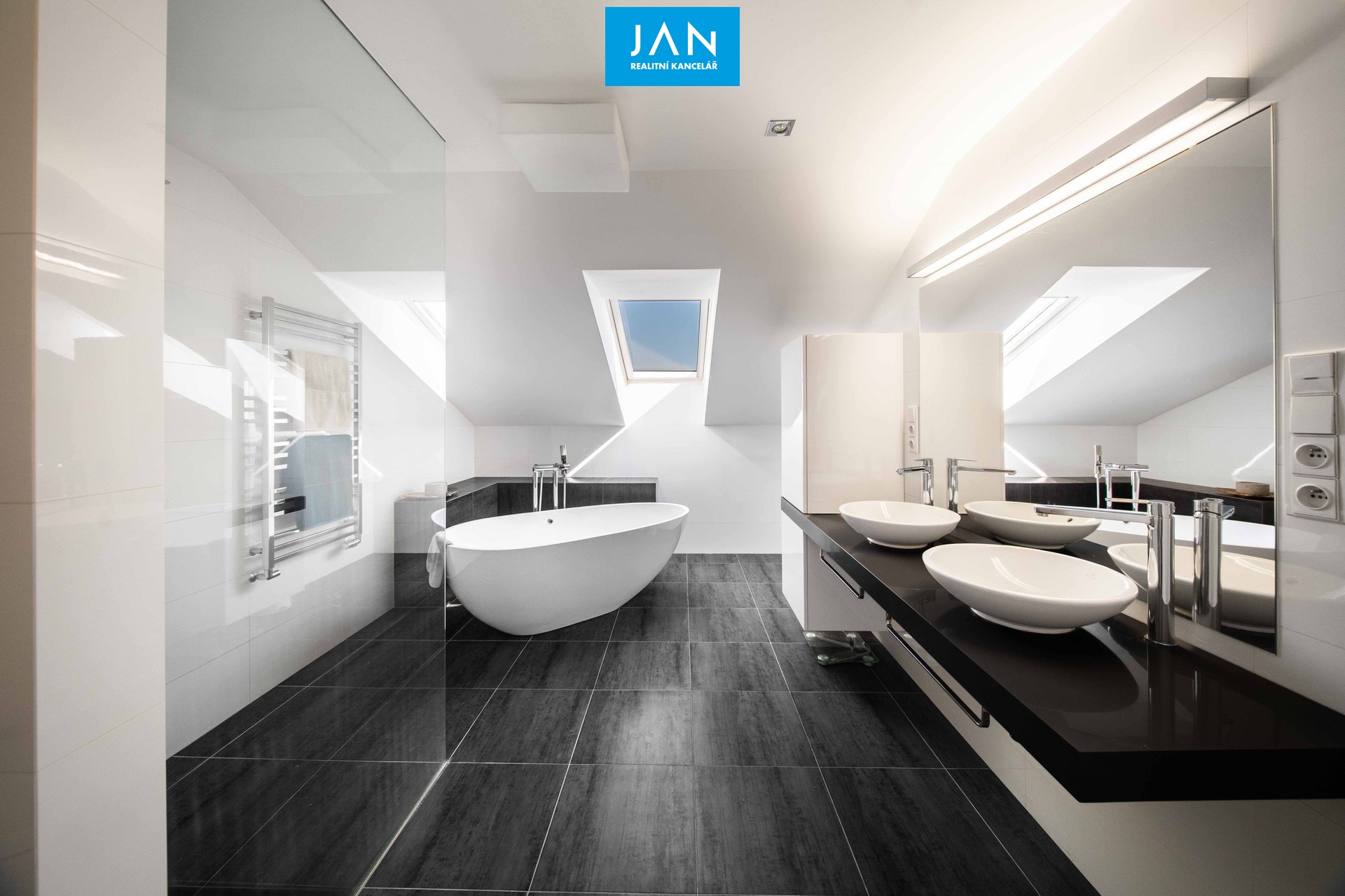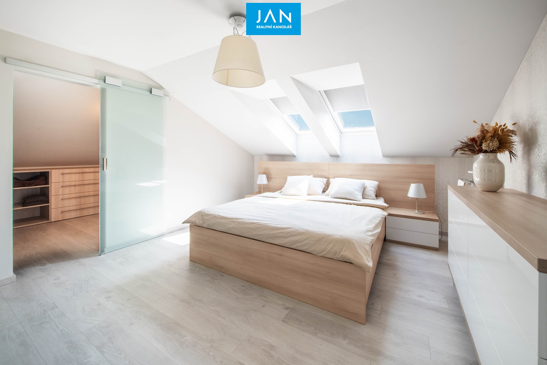 4 prostorné pokoje, z toho tři s vlastní šatnou, galerie, dvě koupelny s WC.