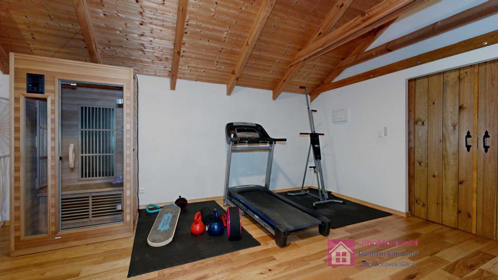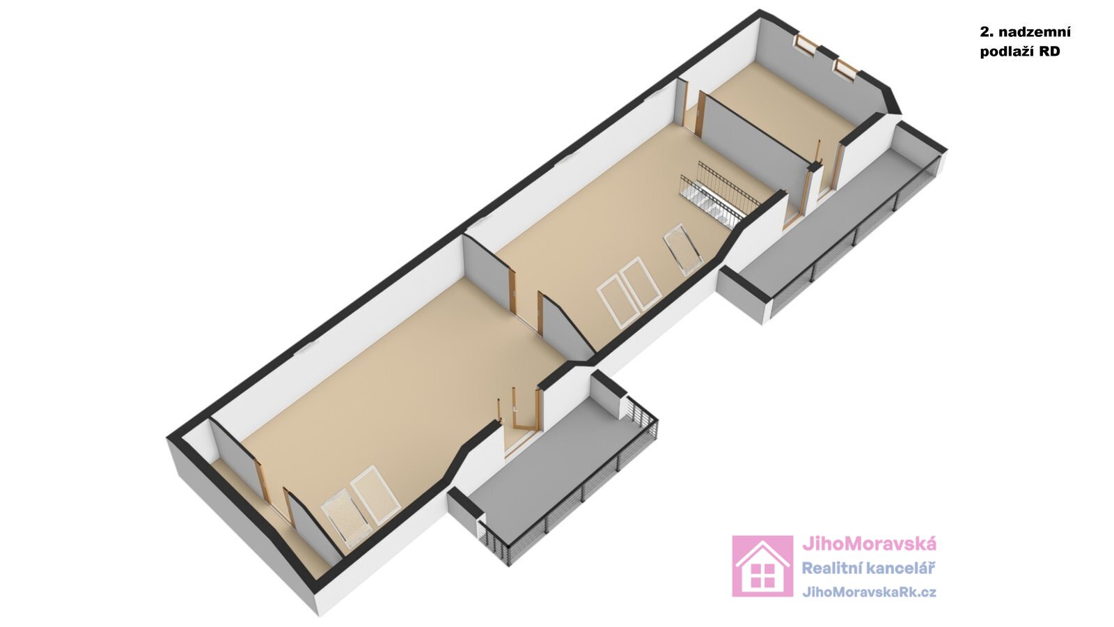 podkroví: schodiště, pokoj s balkónem, pokoj, pokoj s balkónem.