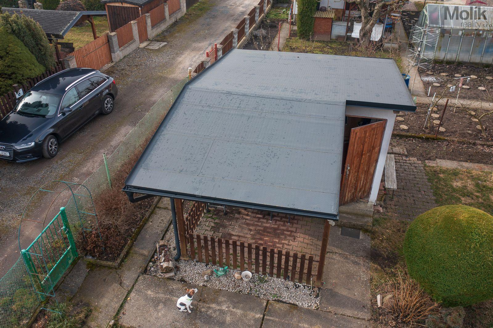 Kůlna s novou střechou (2024), částečně podsklepená