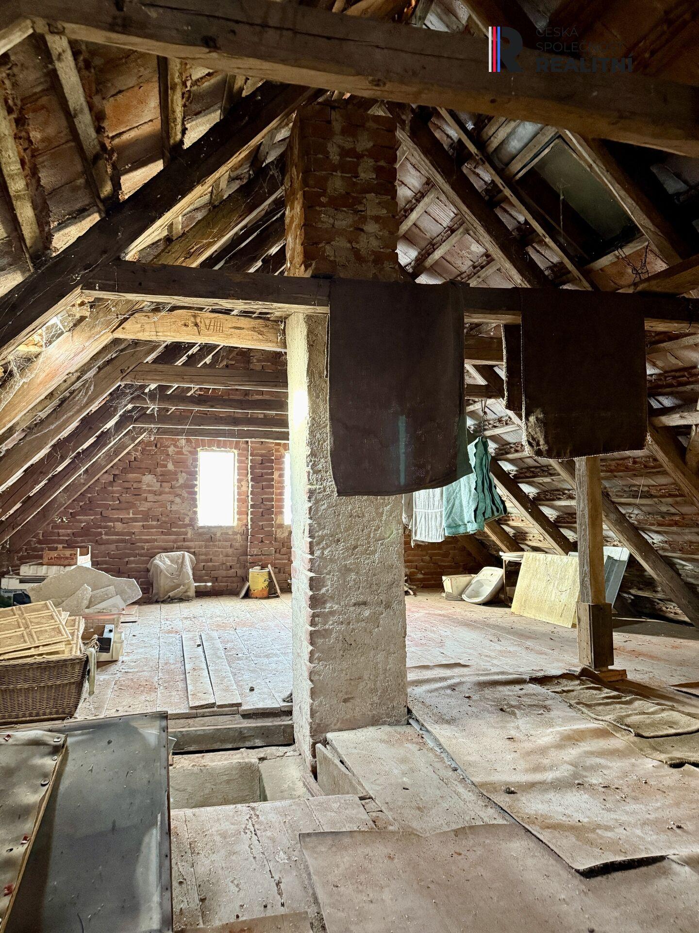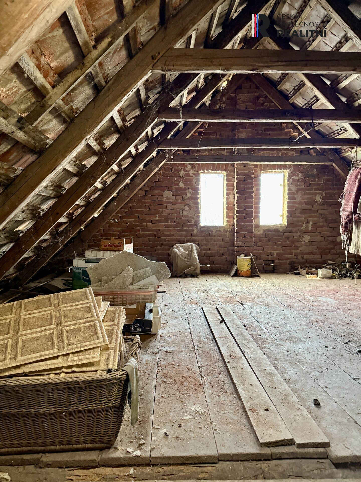 Půda sloužila jako úložný prostor, je dostatečně velká pro to, aby zde vznikly v případě potřeby další dva pokoje.