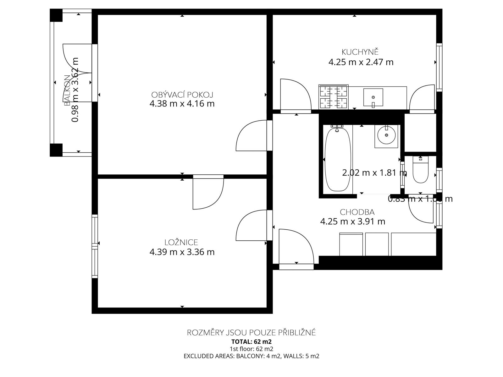 - Užitná plocha: 62 m²